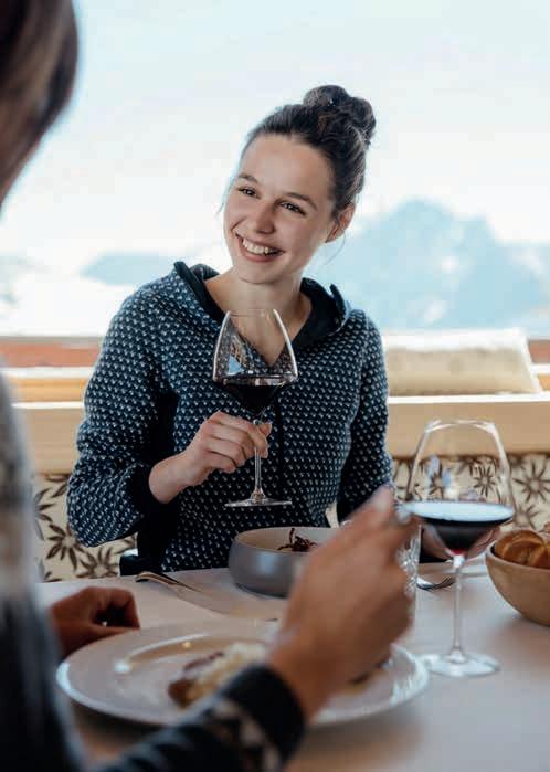 di qualità e servizi. Un’esperienza che non deve mai mancare in una vacanza in Trentino è l’incontro con la gastronomia del territorio e la scoperta delle ricette della tradizione. I luoghi deputati non sono solo i ristoranti, ma anche i rifugi in quota lungo le piste, dove sedersi a tavola è sempre un momento speciale: per una sosta gourmet tra una discesa e l’altra, un aperitivo nel bosco o l’apericena con vista su un tramonto dolomitico, o ancora meglio per cena, magari dopo una passeggiata con le ciaspole o un viaggio a bordo di una motoslitta. Un caminetto acceso, ambienti semplici e sempre curati, questo è lo spazio dove poter godere dei sapori della cucina
