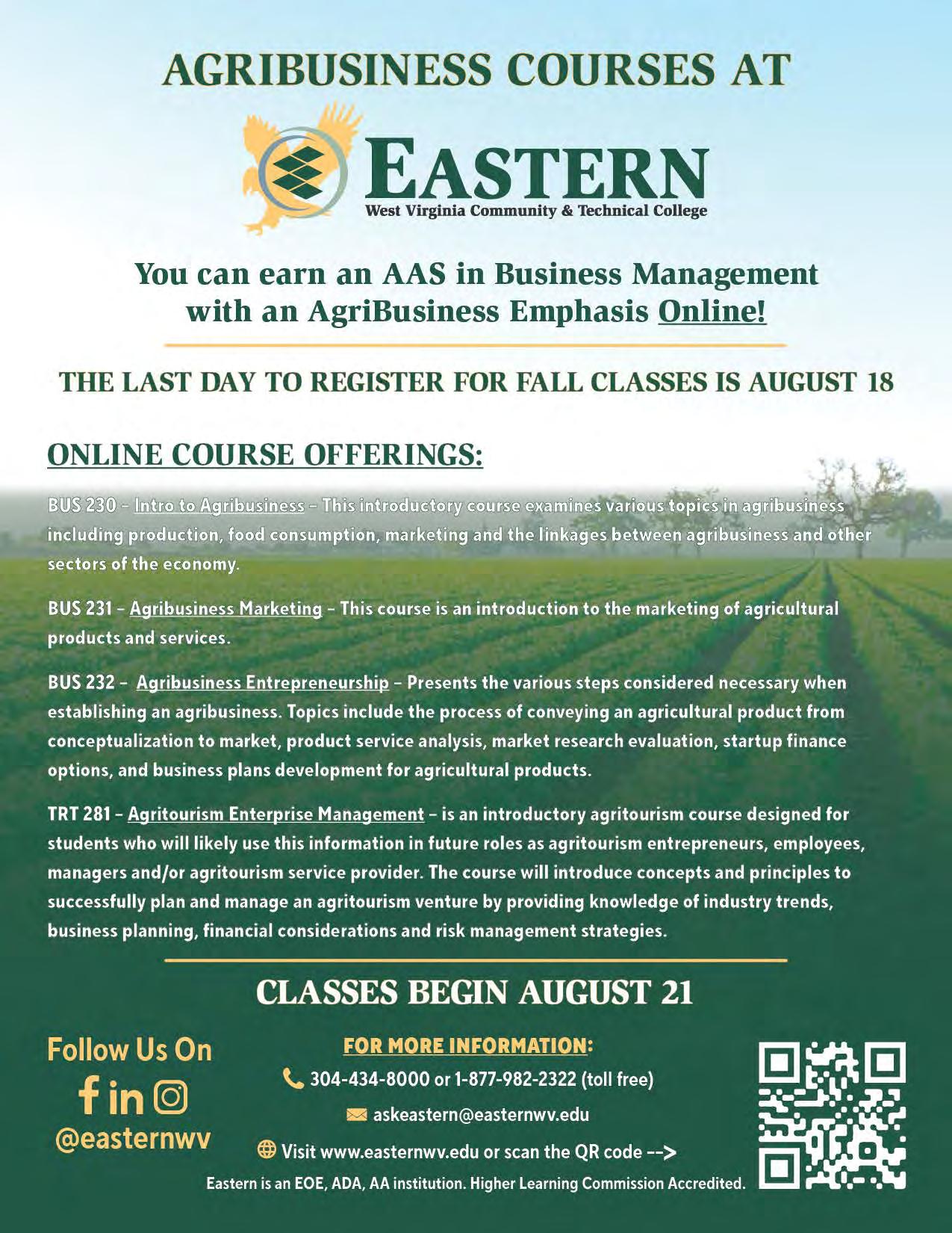 Contact Us Today at aginnovation@easternwv.edu