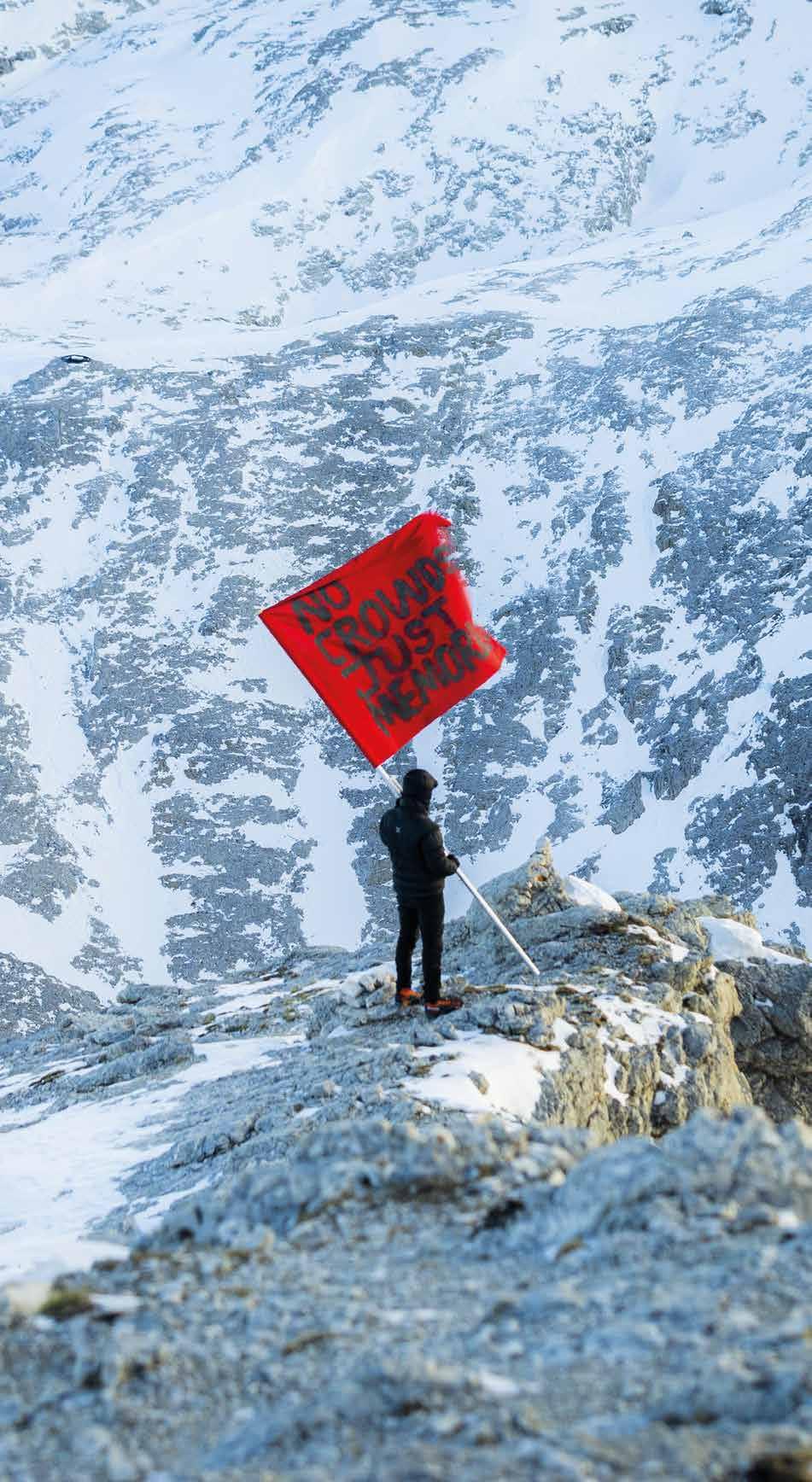 Per rallentare la fusione dei ghiacciai, in alcune località ad alta frequentazione turistica si ricorre al posizionamento di teli realizzati in tessuti sintetici. Tuttavia la loro reale efficacia è dubbia. Le fotografie di Claudio Orlandi documentano lo scioglimento dei ghiacciai alpini, soffermandosi sui teli geotessili impiegati per rallentarne la fusione, la cui efficacia solleva parecchie perplessità.