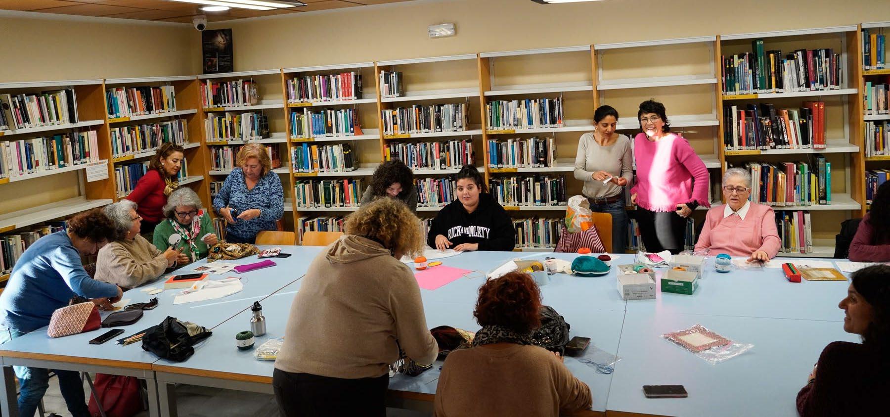 Este proyecto de co-creación y su exposición de clausura en Espartinas, favoreció el encuentro entre personas motivadas en el ejercicio de la artesanía provenientes tanto de la ciudad como del entorno rural. En la foto se aprecia integrantes del colectivo Tejedoras del Muelle de la Sal que conversan con una mujer perteneciente a la Asociación Entre Mantones y Sedas.