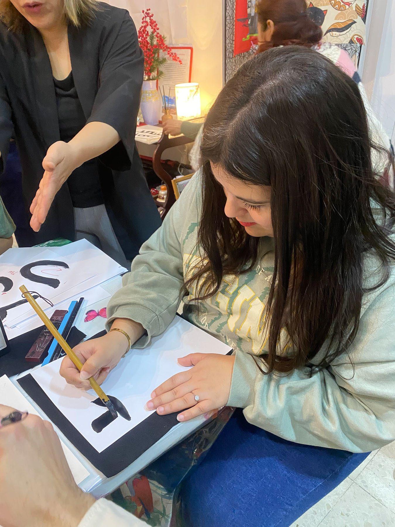en el taller de caligrafía japonesa impartido en la Asociación de Cultura