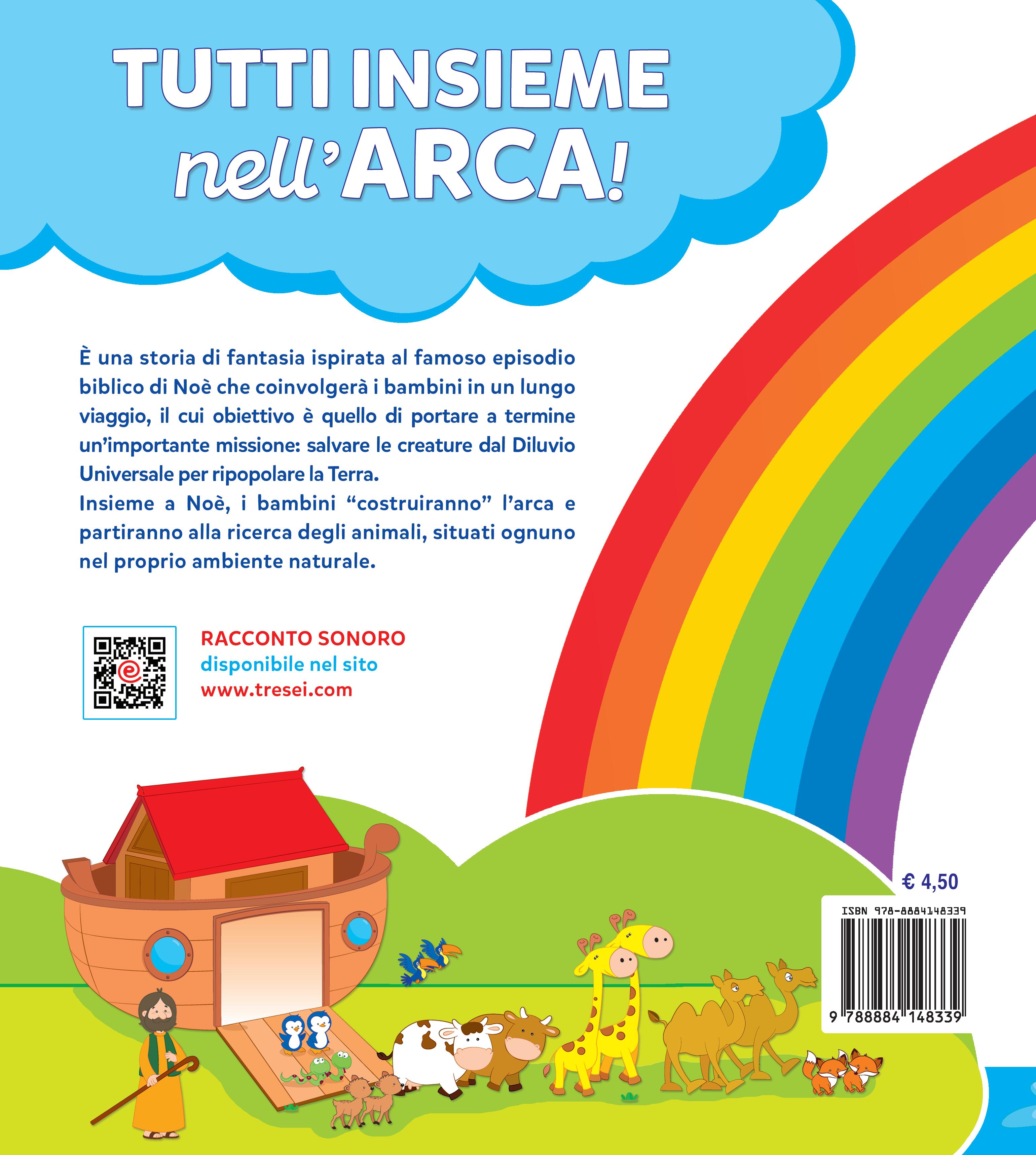 È una storia di fantasia ispirata al famoso episodio biblico di Noè che coinvolgerà i bambini in un lungo viaggio, il cui obiettivo è quello di portare a termine un’impor tante missione: salvare le creature dal Diluvio Universale per ripopolare la Terra. Insieme a Noè, i bambini “costruiranno” l’arca e partiranno alla ricerca degli anima li, situati ognuno nel proprio ambiente naturale. Durante l’ascolto della storia il bambino potrà completare le immagini attraverso divertenti attività di colorazione, ritaglio e disegno, indicate da una consegna.