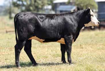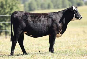 This is a thick and deep bodied female. As she matures, she will have lots of volume. She is backed by some outstanding EPDs and ranks in the top 35% for CED, top 4% for weaning and yearling, top 1% for TM and CW, top 30% for API and top 10% for TI. She sells with a 9/4/25 commercial bull calf by her side sired by Solomon/ HB011371