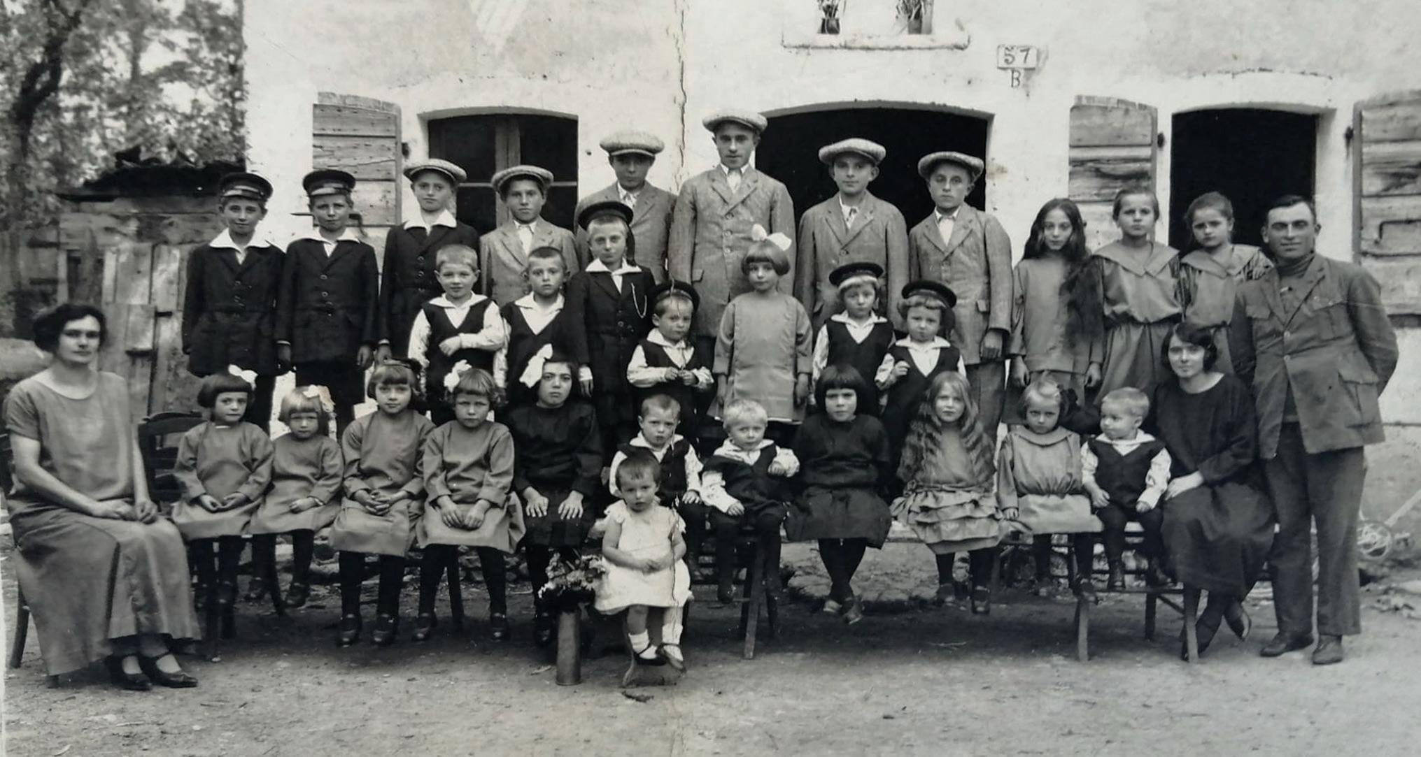 Foto di famiglia “allargata” per Ottavio Bottecchia, che con i proventi del Tour de France del 1923 aveva rifatto il guardaroba a tutti i nipoti, ritratti con lui nella fotografia.