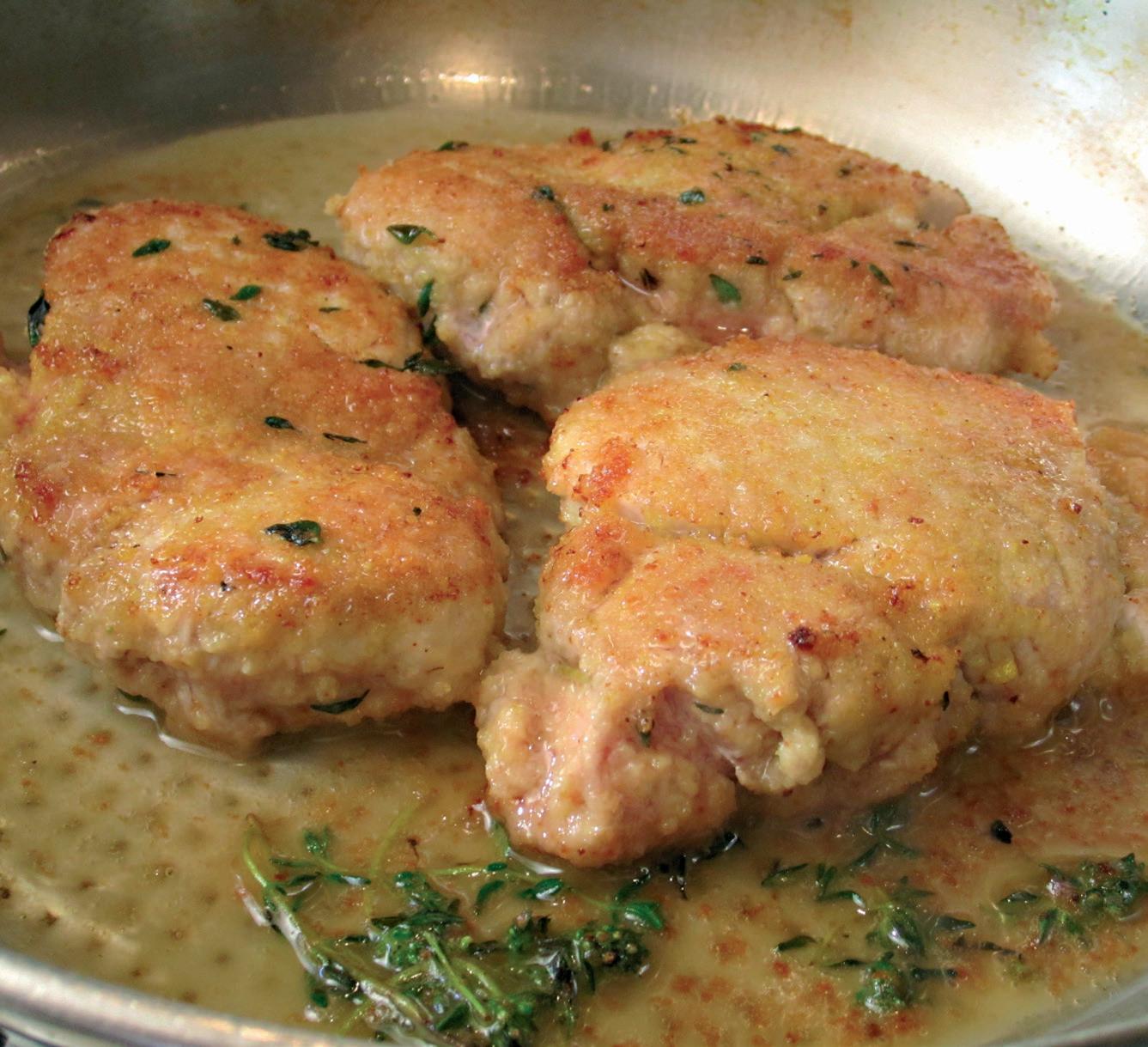 Preparazione: frullate per bene il timo assieme al pane, con sale e pepe appena macinato. Passate i filetti di vitello in questo composto e fatelo aderire bene. In una padella antiaderente con il burro adagiate i filetti e cuocete a fuoco dolce da ambo le parti annaffiando con il vino. A cottura, disponete su 4 piatti caldi con il sugo di cottura. Portate subito in tavola.