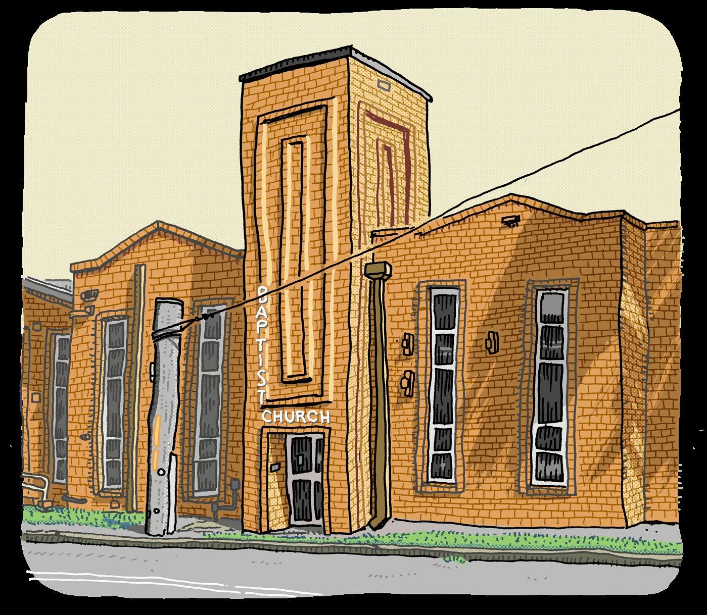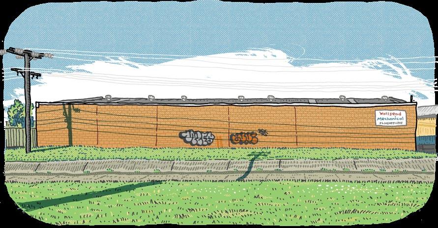 I always hope that my images resonate with local people, and I found an audience in the Facebook group Wallsend Area, Then and Now. Almost every drawing that I posted to the group received a large range of comments that would breathe extra life into the pictures. These snapshots of the past proved to be a big help in the project: memories of grandparents; a dance in the sixties; the names of previous shopkeepers; or just a random connection to the subject — they all appealed to me. I picked some of my favourites to include in this book alongside the drawings they relate to.