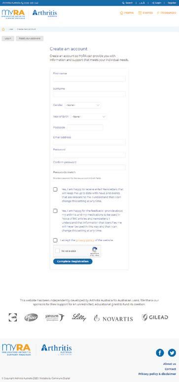 Introducing MyRA, an online rheumatoid arthritis (RA) support program for patients, delivered by Arthritis Australia, to allow people to selfmanage and take ownership of their disease journey. Recognising that everyone’s RA is different, and patients’ information needs vary over time based on fluctuating disease status, the idea of developing an evidence-based resource that better aligns with this reality of living with RA, was born. Staying true to the patient experience, MyRA (myra.org.au) was launched last year with more than 1600 patients currently registered. Built with support from the Australian Rheumatology Association and industry partners – MyRA is designed to be an accessible, interactive, and an informative resource for those referred into the program. Read on to find out more about this program, how your patients can access it and what we have learnt about RA patients during the process of developing this support resource.