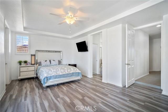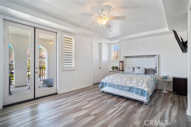 Discover this stunning 4-bedroom, 3-bathroom home in the sought-after Upper Chapman Heights community! Offering 2,655 Sq. Ft. of living space, this home boasts great curb appeal, an open and spacious floor plan, and breathtaking mountanious views from the Front Balcony...or Pond/Golf Course Green View from your covered patio outback. Step inside to find laminate wood flooring, spanish tile in bathroom and laundry room, soaring ceilings, recessed lighting, fresh interior paint, and dual-pane windows with plantation shutters that fill the home with natural light. The formal dining area flows seamlessly into the Kitchen, where the open-concept kitchen features granite countertops, large island with breakfast bar ,ample wood cabinetry with new hardware and a small step-in pantry with additional shelving for storage. Kitchen opens up to your spacious family room that is inviting and warm with a refinished fireplace. The first floor also includes a room with a full bathroom with a walk-in shower and an updated Vanity. Upstairs is a spacious laundry room. The 2 bedrooms are spacious and overlook the Pond/Golf Course. A full-size hall bathroom with dual sinks serves the 2 additional bedrooms, while a hallway linen storage area adds convenience. Large Primary Suite with a luxurious ensuite bathroom offering a soaking tub, separate shower, dual sinks, and a 2 walk-in closet with shelving . The Suite also has a sitting area with a fireplace, this area opens up to your balcony with those gorgeous sunset views. Enjoy outdoor living in the low-maintenance backyard with wrought iron fencing, full length aluma wood covered patio with ceiling fans and lighting all while taking in relaxing pond and golf course views. Additional highlights include 3-car attached garage with overhead storage. A New tankless H20 Heater. Smart Home features too. Community offers low HOA fees, and a low tax rate. Conveniently located near top-rated schools, parks, shopping, and with easy access to the 10 Freeway.