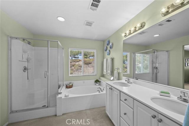 Bathroom Features: Shower, Shower in Tub, Double Sinks in Primary Bath, Privacy toilet door, Separate tub and shower