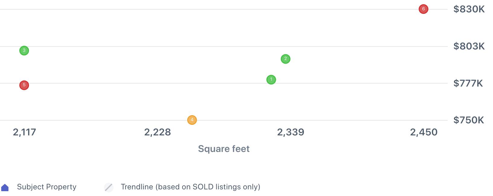 Comparable homes sold for an average of $352 / sq. ft. Many factors such as location, use of space, condition, quality, and amenities determine the market value per square foot, so reviewing each comp carefully is important.