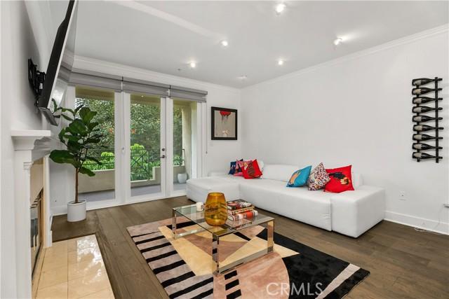 Resort style living! Very sought after top floor Penthouse in the Metropolitan! Very private corner location. This recently remodeled 2 Bedroom, 2 bath plus den features very open floor plan with 13 foot soaring ceilings. This highly upgraded unit features hardwood floors, crown molding, fireplace in living room with custom stone mantle hearth and built in shelves. Kitchen features quartz countertops, high gloss white cabinetry and newer top of the line stainless appliances. The Primary Suite has walk in closet, dual vanities with quartz counters, large soaking tub also encased in quartz and separate shower with built in seat. Custom designed additional vanity with hampers was also added to this beautiful bathroom. Guest bedroom can be used as an office or bedroom with a built in Murphy bed. The front den has beautiful built-in shelving and cabinets and is being used as a formal dining room. Large sunny patio with beautiful, lush palm trees and city lights views. All this set in a guard gated, tropical landscaped community with clubhouse, pool. spa and fitness center. The unit has two assigned parking spaces close to the elevator. The Metropolitan is close to Fashion Island, John Wayne Airport and South Coast Plaza. This is a must see! Hurry!