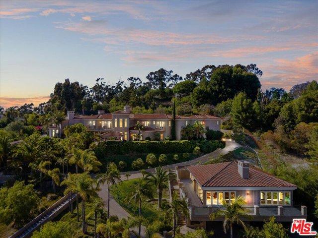Set on a sprawling 2.7 acre lot, this gated Mediterranean estate offers serene privacy, beautiful views, and resort-level amenities. The masterfully designed 11,000 sqft main home offers soaring ceilings, a fully-equipped chef's kitchen, movie