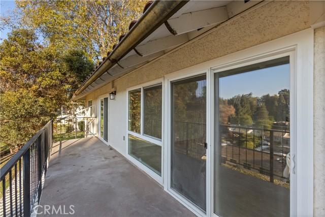 Wow, this is a fabulous home with exquisite top of the line luxury and styling. No stairs to this upper unit home (2bd/2ba) that has been completely remodeled and is a one of kind custom design by a top contractor in Laguna Woods Village. As you enter the home you are immediately attracted to an architecturally stunning skylight and enticing window views. A lovely glass enclosed balcony provides additional year round living space. The spacious living room showcases a wood/ stone media wall with shelving on each side. The gourmet kitchen has custom cabinets, quartz countertops, and high-end appliances. The kitchen island is perfect for entertaining. The Primary Suite has custom built-in cabinetry, a spacious ensuite bathroom and a walk-in closet. The 2nd bedroom and the living room both have access to the enclosed balcony Additional features include recessed lighting, ceiling fans, a dimmable solar tube, and central air/heat. This home has ample indoor storage and a full size washer/dryer. Parking is conveniently located on the same level nearby