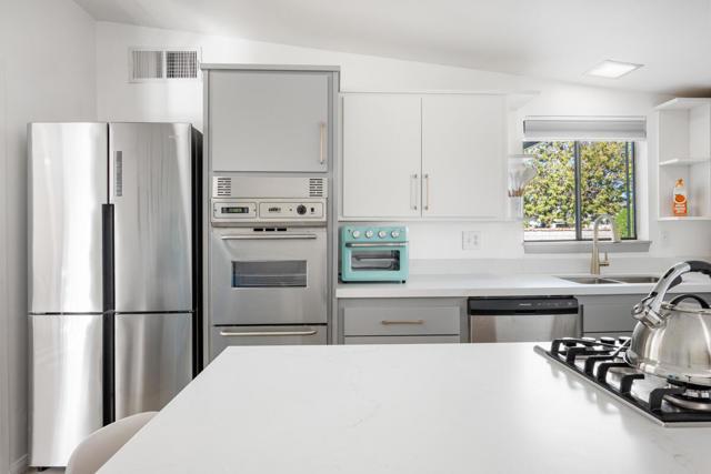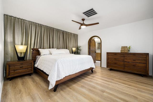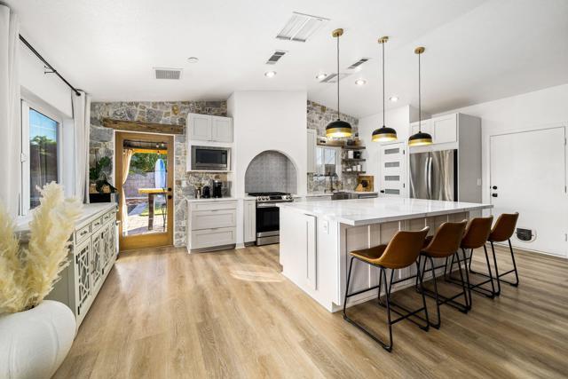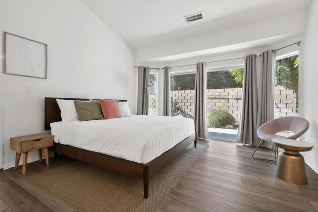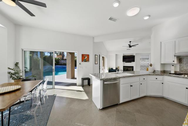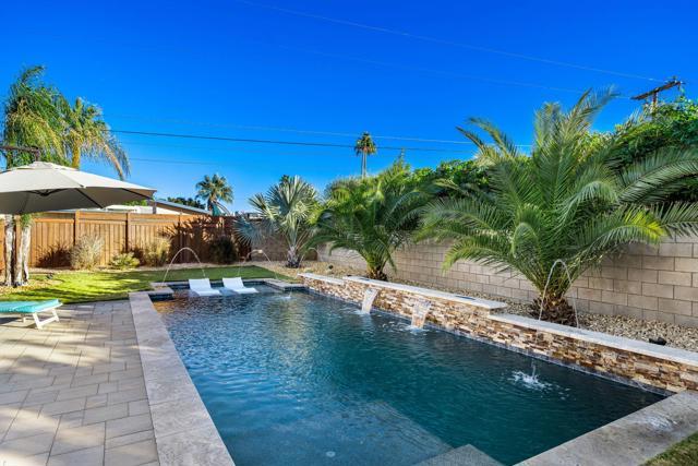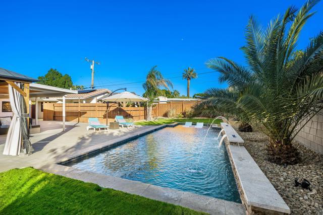 Centrally located and fully updated, this stunning home is just a short walk to El Paseo's world-class shopping and dining. The property features a 3-bed, 2-bath main house and a detached 1-bed, 1-bath casita complete with its own laundry and private patio areas. Step inside to find an arched entry leading to a bright living room filled with natural light, centered around a cozy gas fireplace. The upgraded kitchen boasts quartz countertops, a stone feature wall, and updated appliance package. Multiple doors open to a private outdoor living space featuring covered patios, charming gazebos, an outdoor shower, and a newer heated saltwater pool. The spacious primary suite offers a peaceful retreat with a soaking tub, walkin shower, and double vanity. Two additional bedrooms and a stylish bath complete the main home. The detached casita provides privacy for guests or family with a full kitchen, living space, bedroom, bathroom, and laundry. An oversized garage offers parking for two cars and plenty of storage. Enjoy mountain views and serene privacy--your perfect desert escape awaits!