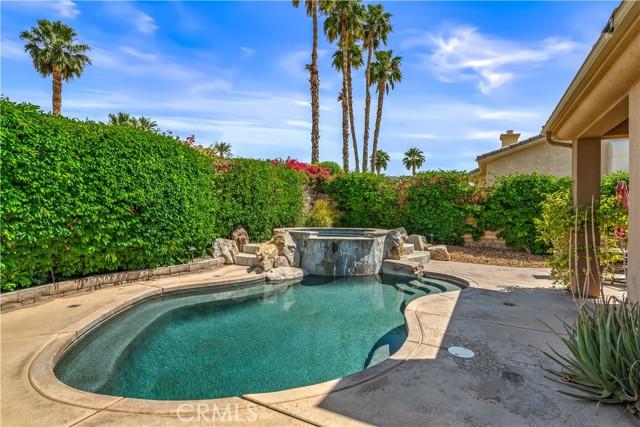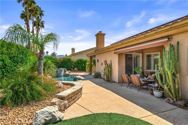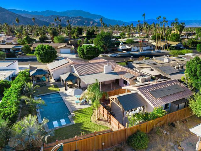 yielding an exceptional return on investment for the current homeowners. With a current seasonal lease in place, one can buy this turn-key home and start reaping the rewards on day one. This home has lots of upgrades including: new outdoor BBQ area, brand new floors, a new primary bathroom with open shower concept with soaking tub, new interior paint, and new pool filters and cartridges! This 3 bedroom 2.5 bath home is perfect for entertaining with a separate living room which includes a wet bar and cozy fireplace. The kitchen is wide open to the comfortable family room that also has its own fireplace. This property sits at the end of a quiet cul de sac with a huge upgraded swimming pool, spa and patio ideal for outdoor living. Just 5 mins from El Paseo with world class shops and restaurants, it is also centrally located to the best schools, grocery stores, pharmacies, nail shops, takeout and more. There is a Solar Lease in place that costs $206/ month. This home won't last long so please call for a private showing today!