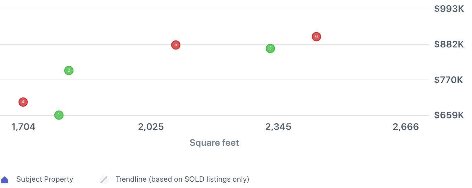 Comparable homes sold for an average of $401 / sq. ft. Many factors such as location, use of space, condition, quality, and amenities determine the market value per square foot, so reviewing each comp carefully is important.