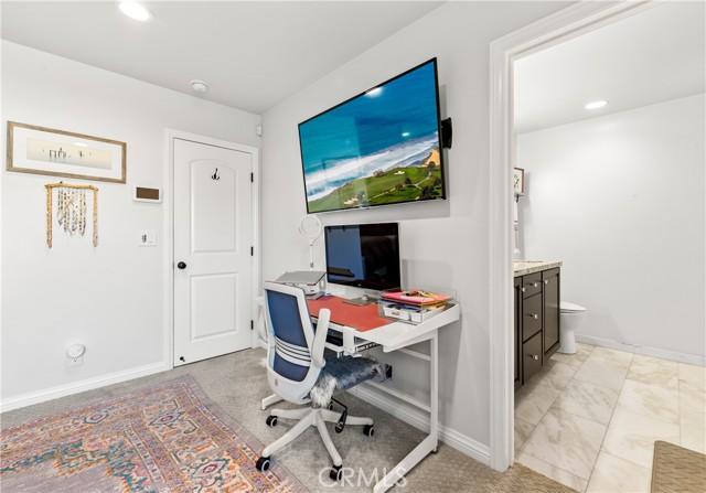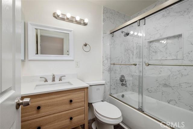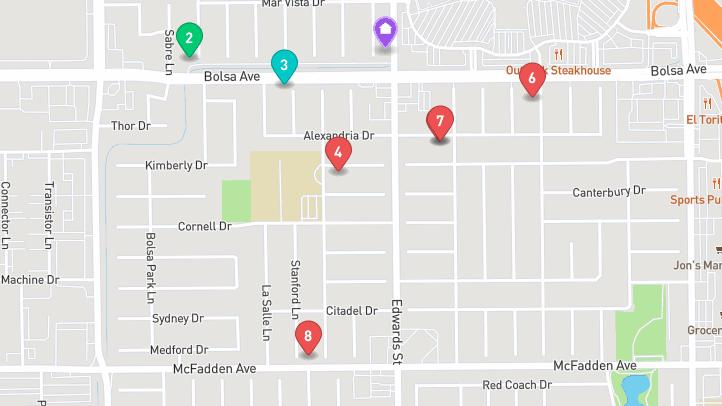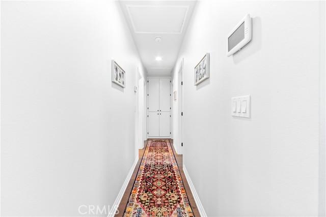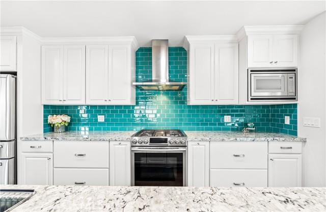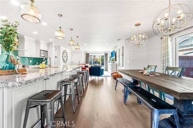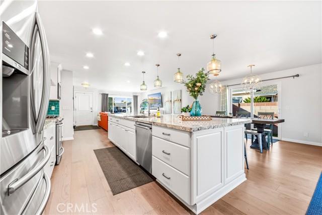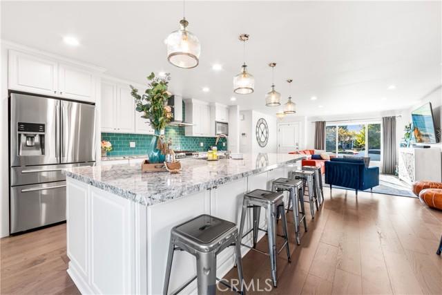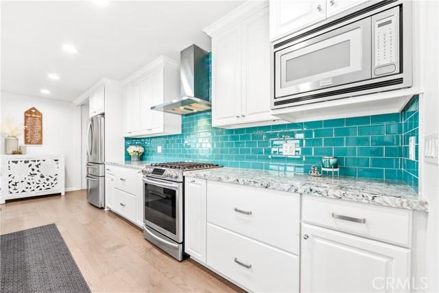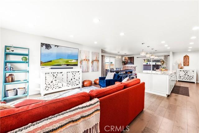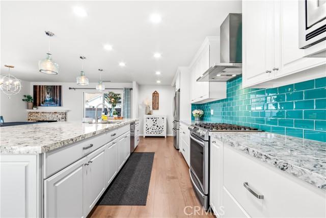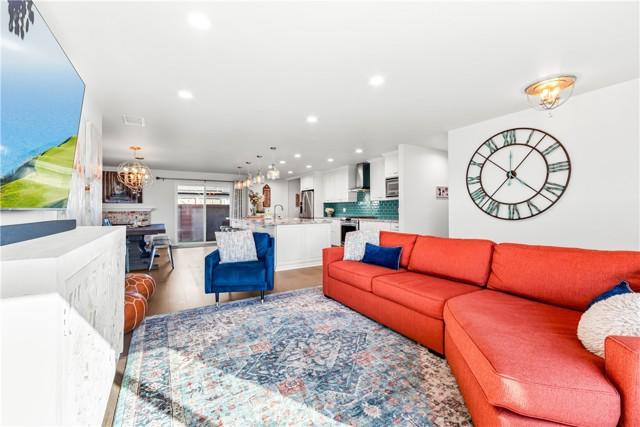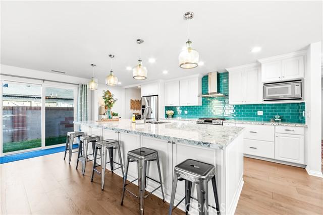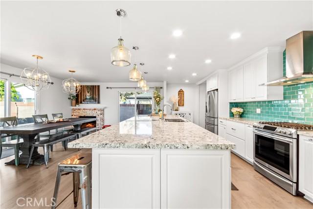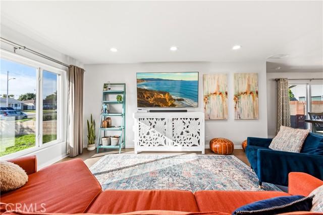 It's rare to find a home with exceptional aesthetics and outstanding functionality, but this stunning home delivers on both fronts. The upgrades were completed over time, strongly emphasizing quality and function. The owner carefully coordinated and chose every detail, ensuring the most beautiful selections were visually appealing and highly durablea rare find: 3 bedrooms and 2 bathrooms at the end of a cul-de-sac location. You will appreciate the attention to detail as you enter the home and begin to open drawers, shut doors, and turn on faucets. The apparent features are chandeliers and pendants by Ballard Designs, Cambria Quartz stone counters, marble flooring, and lovely wood floors. The not-soobvious upgrades include system improvements, such as new plumbing, roof, electrical panel, HVAC, and AC. The design objective was to create an inviting gathering area for the whole family to enjoy quality time together, open space, delicious food, lots of fresh air, natural light, and a cozy atmosphere. Mission accomplished! The lovely brick fireplace is positioned between two sliding doors, creating a delightful and relaxing dining experience. The stunning kitchen is on full display. The glass tile backsplash sets the stage, and the perfectly chosen Quartz subtly complements the color tones of the backsplash. The kitchen sink faces the guests, providing an excellent spot for the host to stay connected. The custom cabinets are flawless, with giant deep drawers & more storage under the expansive kitchen island, accessible from both sides. The living room, kitchen, and dining area are seamlessly connected, and the bedrooms are equally beautiful. The home features Milgard windows and sliders, recessed LED lighting, smooth ceilings, & high-quality paint with perfect color choices. Both bathrooms have been remodeled & finished with elegant marble and quartz, Delta fixtures, and stylish glass barn doors, maximizing space and style. Have you ever seen a beautiful roof? Take a look at the Presidential Shake lifetime roof! Additional upgrades include Pex Plumbing, an Electric Panel, a Tesla charger, HVAC, Milgard windows, a Water Heater, Fresh Exterior Paint, & Stucco. The cul-de-sac location provides a safe environment, and the 2.5-acre Schroeder Park is perfect for outdoor activities. The house is close to the Beach, Bella Terra, Goldenwest College, and award-winning schools. Come and see this rare and unique home