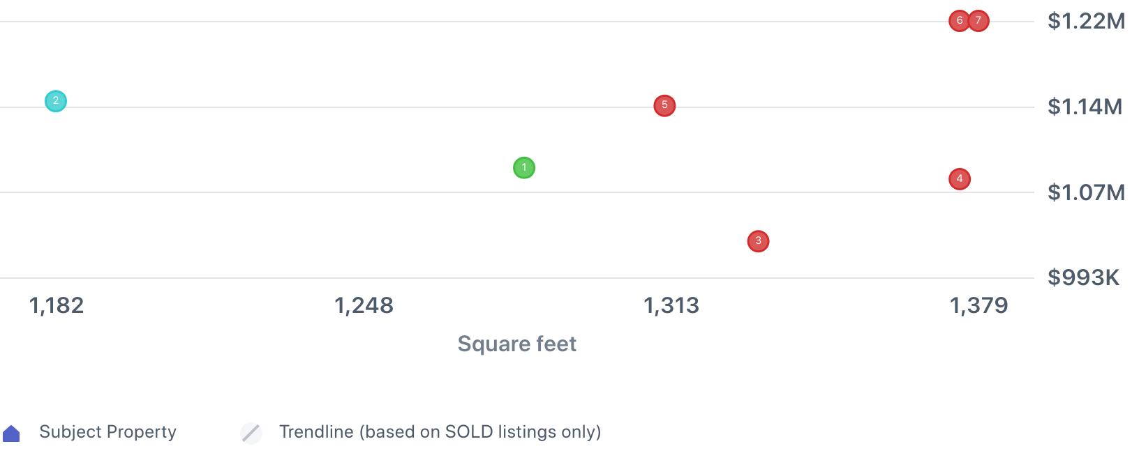 Comparable homes sold for an average of $840 / sq. ft. Many factors such as location, use of space, condition, quality, and amenities determine the market value per square foot, so reviewing each comp carefully is important.