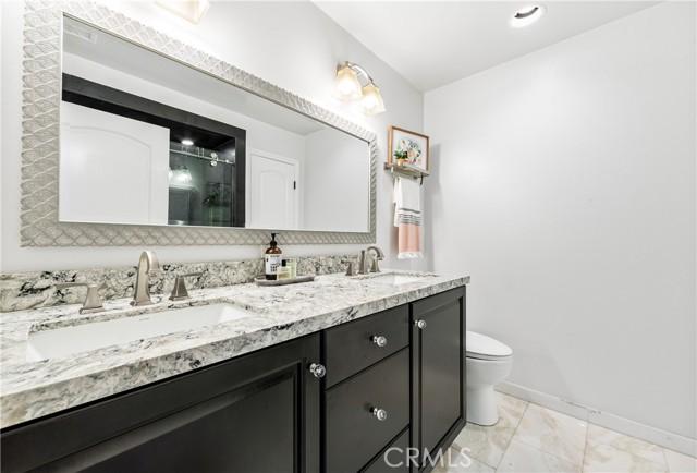 Bathroom Features: Bathtub, Shower, Shower in Tub, Closet in bathroom, Double sinks in bath(s), Double Sinks in Primary Bath, Exhaust fan(s), Linen Closet/ Storage, Main Floor Full Bath, Quartz Counters, Remodeled, Stone Counters, Upgraded, Vanity area, Walk-in shower