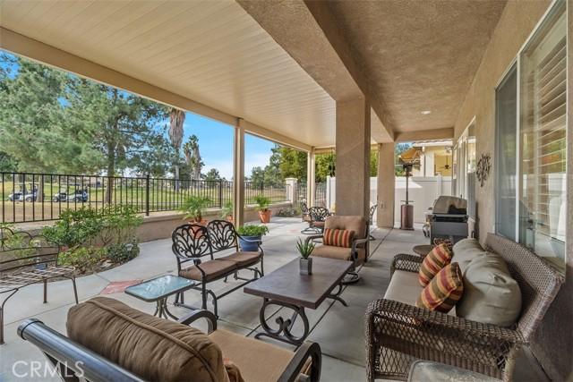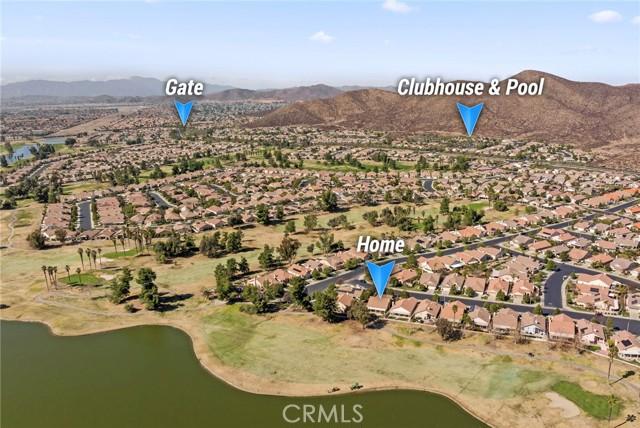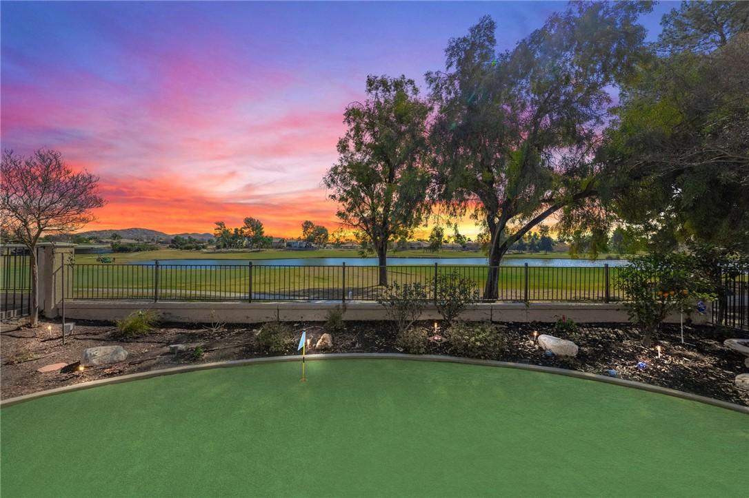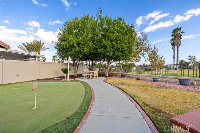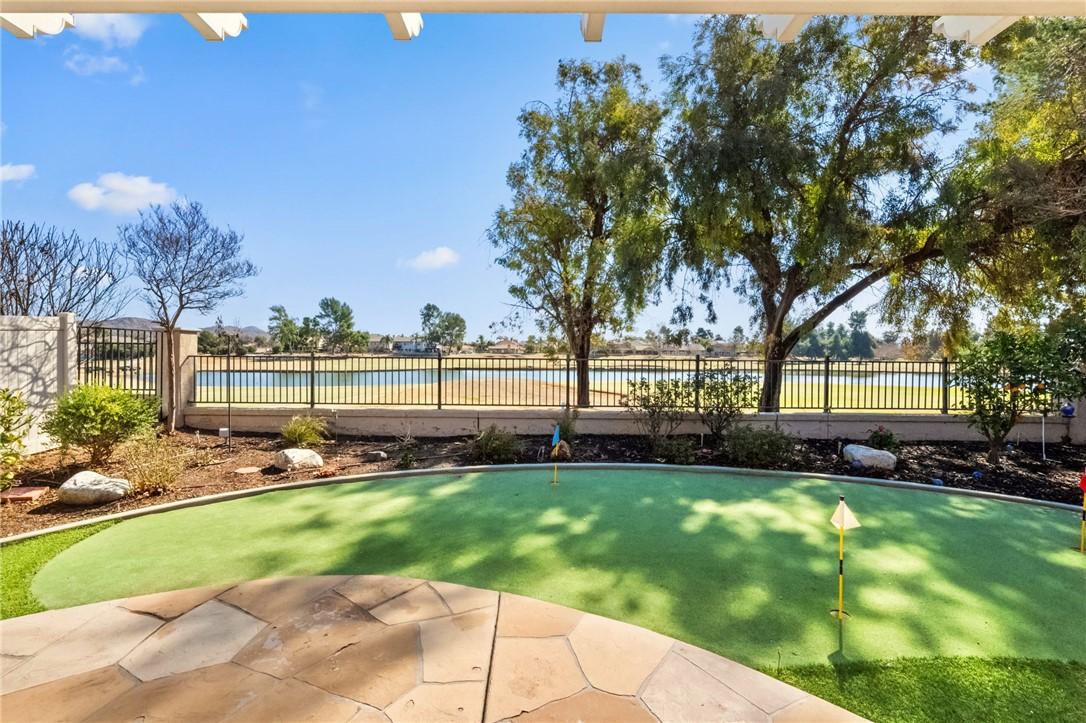 The links are calling! Welcome home to "The Oasis", Menifee's premiere 55 and better gated community. If it's comfort, safety, and security you're seeking in your retirement years, The Oasis is the place for you! No one gets through these gates without passing through the 24 manned guard shack! And the HOA amenities give "tropical resort" vibes as soon as you drive up! Tons of coordinated activities, theme nights, social clubs, travel groups, there's something to keep everyone active! No need for a gym membership, your clubhouse has one! Plus a library, billiards, theater room, banquet space, and so much more. If you've never toured the amenities of this beautiful community, do yourself a favor and check them out! OH, Back to your new home .... this adorable 2-bedroom + office/den home is situated at the end of a cul-de-sac, right on the 5th Green of the Golf Course! The unique location gives you not only one of the largest lots in the community but also amazing views of the golf course and the lake! Take in quiet afternoons under the patio, BBQ'ing on your built-in BBQ and watching the golfers as they work on their best Tiger Woods approach shot! And practice your putts on your very own putting green! This great floorplan offers not only your primary suite with that same sweeping golf course view, but also offers a 2nd bedroom for guests AND you still get to have a den, man-cave, office, sewing room, or whatever your heart desires! The point is, you have the extra room for it!
