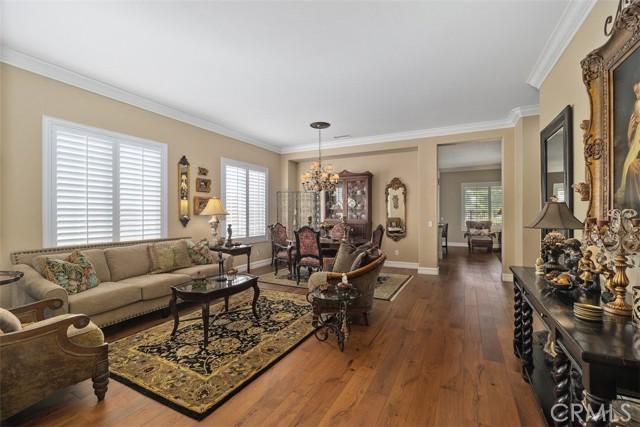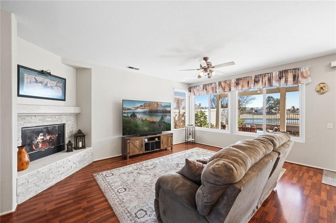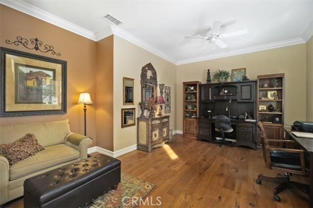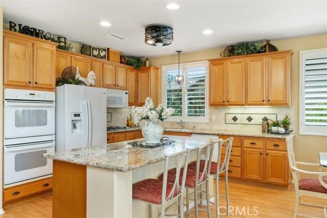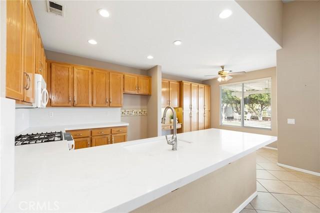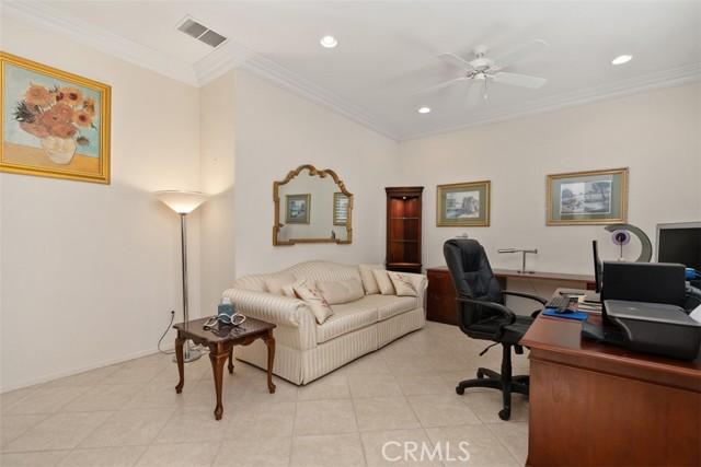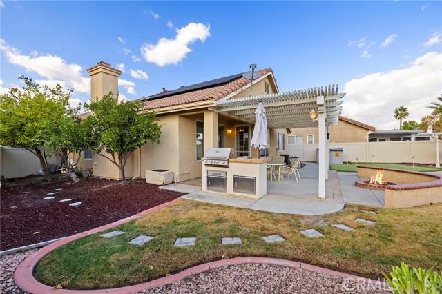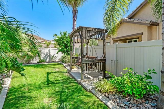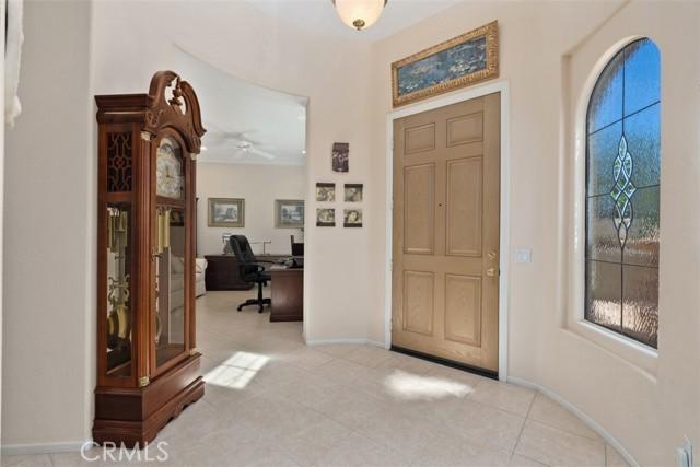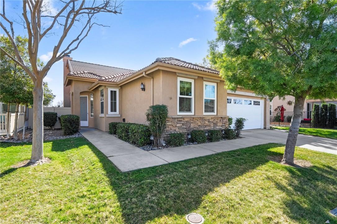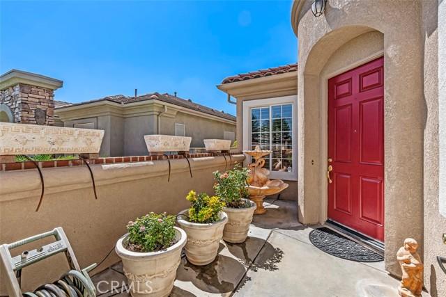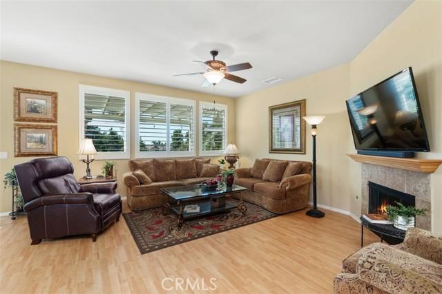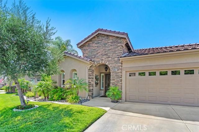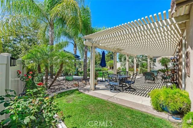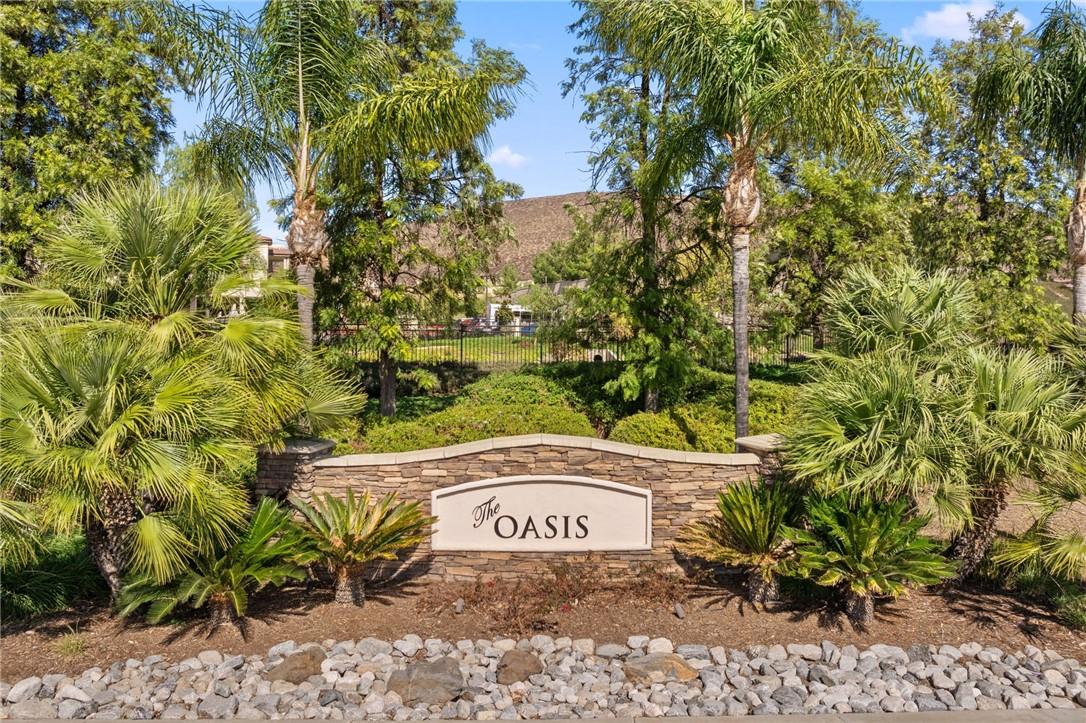 STUNNING Turn Key Golf Course View Property in the 55+ Gate Guarded Resort Style Community of the OASIS! Unparalleled Curb Appeal as you drive up to this BEAUTY! Outstanding Honey Stop the Car! Landscape, new exterior paint design, exterior window upgrade, and Stacked Stone Ledger Rock Design entry. Two bedrooms plus center office with Custom Glass double door entry ( Builder Option to bedroom # 3).From the wide entry all drawing you out to the Fantastic VIEW .. this home will not disappoint! Complete Kitchen remodel removing the diagonal Island and creating a NEW Rectangle Island to create more space in the Great Room. Full Granite Island/ Counters and a Custom Stone Backsplash with tile inlays. Primary Bathroom has been completely remodeled to include a Custom Tile Walk in Shower with 1/2" Frameless Glass, Granite Counters ( square sinks), Custom full length mirror and 20" Custom Tile flooring. Coffered ceiling in Primary, 5" Plantation Shutters through out as well as Custom Fans. NEWER Energy Efficient HVAC & Water Heater, Quiet Cool Whole House Fan, Custom Front Door and remodeled Fireplace Wall ( removing the stick out extension). Fantastic Garage with full side wall storage, over head racks, built in workshop bench and an interior Golf Cart parking space! One of the most GORGEOUS rear yards ever! Extensive Paradise Landscape through out. Alumawood Patio Cover, and secondary seating area with full hardscape and an elevated VIEW of the Golf Course. Large side yards for extra breathing room! On East side is a Custom Built Swing for relaxing. On the opposite side yard a Large garden shed. PLEASE VIEW the Virtual Tour for optimal pictures of the property, A WIN/WIN property! HOA covers front yard water and landscape care as well as the trash service. Close to all shopping, medical, restaurants and easy Freeway access to access all the popular So Cal Destinations ( Beaches/ Mountains/ Deserts/ Temecula Wine Country)