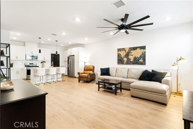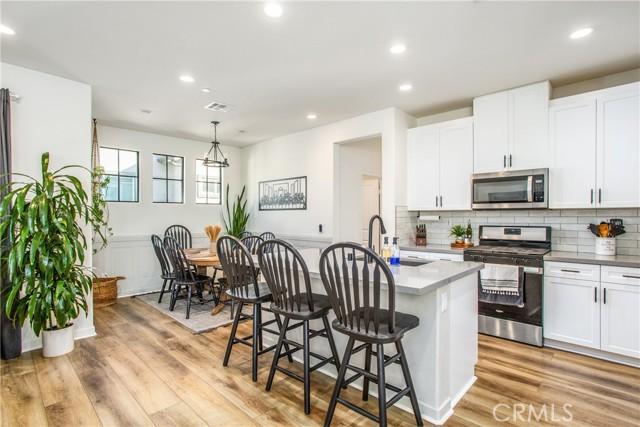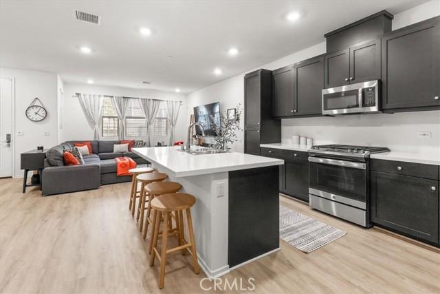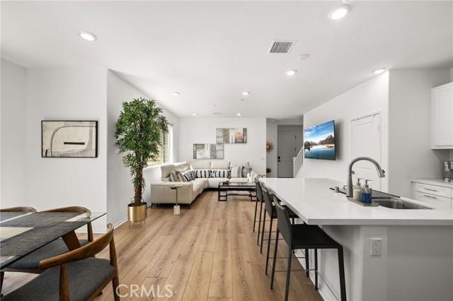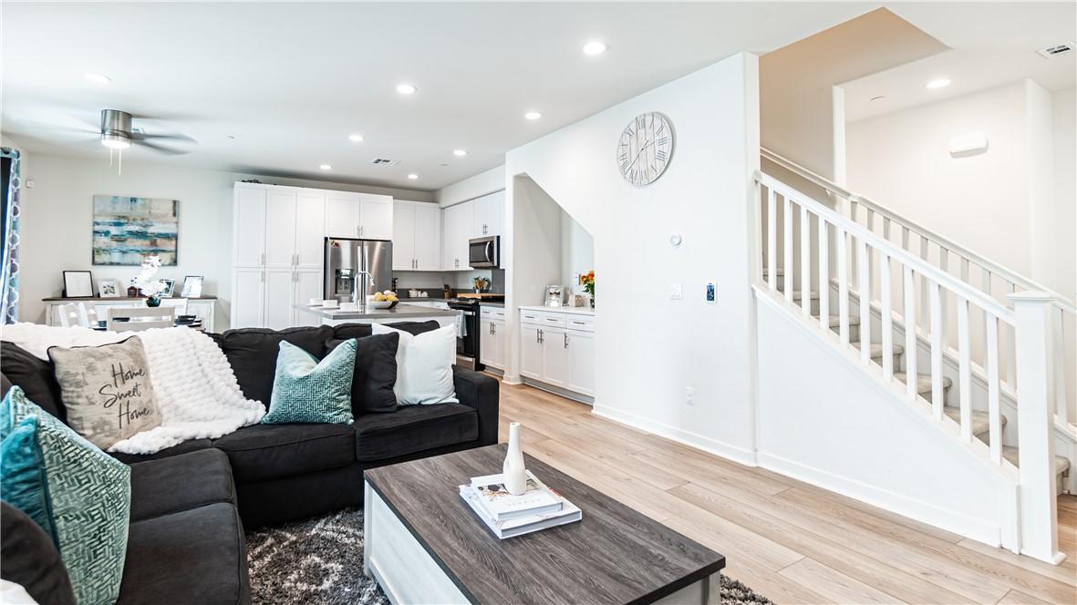 The open-concept floor plan seamlessly connects the living room, dining area, and kitchen, creating an inviting space for everyday living. The kitchen is equipped with premium finishes, modern cabinetry, and stainless steel appliances, providing a practical and stylish setting for meal preparation. The living and dining areas are thoughtfully integrated to suit a variety of needs, whether for casual gatherings or formal occasions.