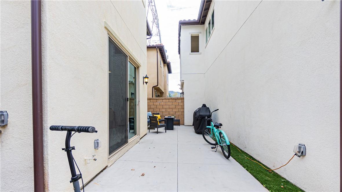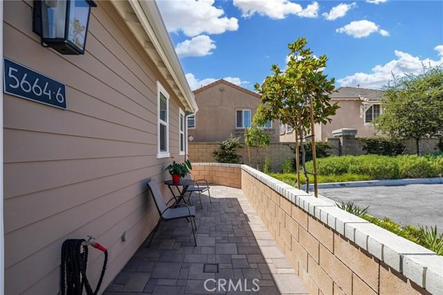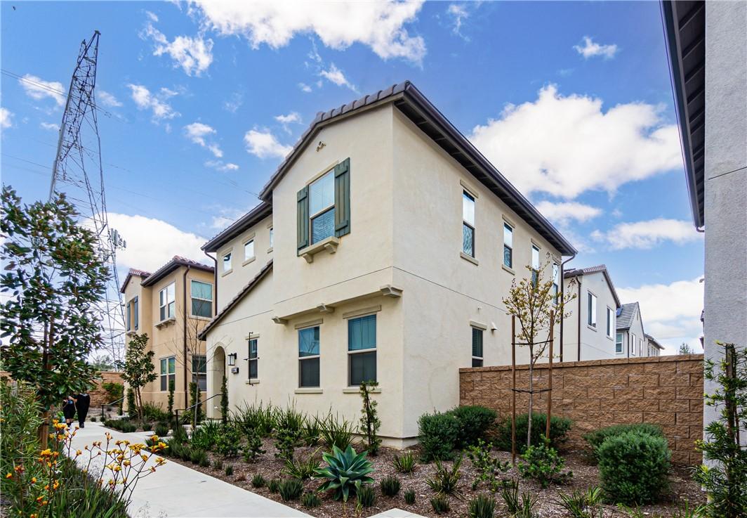 This property features a solar power system. The corner lot includes landscaped grounds with a front and side patio, offering outdoor spaces for relaxation. The exterior is enhanced with pavers, adding to the propertys curb appeal.