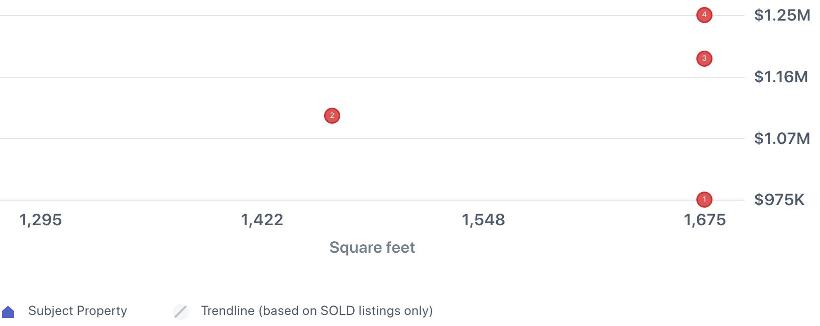 Comparable homes sold for an average of $697 / sq. ft. Many factors such as location, use of space, condition, quality, and amenities determine the market value per square foot, so reviewing each comp carefully is important.