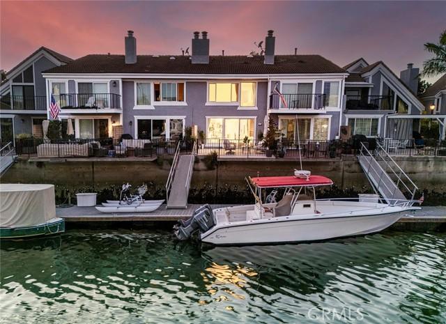 Rarely available stunning DEEP WATER townhome located in the Seagate community in Huntington Harbour! This home includes a designated 30' PRIVATE BOAT DOCK in front of the property and a detached, freshly renovated TWO CAR GARAGE! This move-in ready, 1,826 square foot floor plan features three bedrooms, two and a half bathrooms, and a spacious loft on the third level. The second level is an absolute showstopper with the primary bedroom which includes an en suite bathroom, two mirrored closets, and private balcony overlooking the harbour so you can enjoy the stunning channel views from the luxury of your bedroom. Downstairs offers plenty of natural light and is perfect for entertaining or relaxing. There is a den off of the kitchen that can be converted to a downstairs bedroom if desired. This level opens to the expansive waterfront patio which is ideal for enjoying the stunning sunrises to the east and gorgeous sunsets to the west, picturesque main channel and mountain view and to enjoy the yearly 4th of July and Christmas boat parade. Beautifully remodeled with many upgrades including: new fixtures, sinks, appliances, floors, paint, window coverings (living room shades are on a remote control), plantation shutters in the primary bedroom, smart home features with controllable lights in the kitchen, light dimmers throughout, heating, zoom cameras, and newly installed electrical outlets. The impressive enclosed garage located under the tennis courts has recently been renovated with new epoxy flooring, lighting, electrical outlets, and Kobalt locking cabinets and tool storage. Additionally, The upstairs laundry room has been updated with natural wood built in shelving, cabinets and electrical outlets. The Seagate community includes many amenities including two pools, spas, clubhouse, six tennis courts, and ample parking and greenbelt space. This modern, sophisticated home on the water truly encompasses the Huntington Harbour lifestyle!