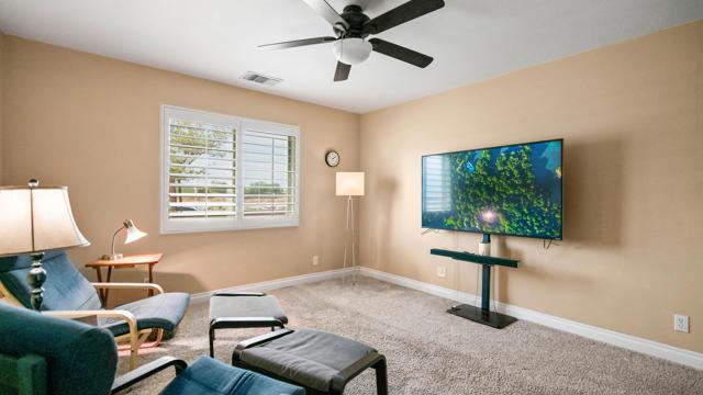 Beautiful home! Located at the Ridge View development in Thousand Palms. Property counts with 5 Spacious Bedrooms, 3 full baths and a 3 car garage. Great open and updated kitchen with stainless steel appliances and granite counter tops. The newer refrigerator, washer and dryer are included in sale. It has a very convenient separation of bedrooms. Primary bedroom has a walk-in closet. A good size laundry room. Window shutters throughout the house! Nice cover patio and a backyard large enough to put a splashy pool & spa. Subject home is within the lower cost power company of IID. Courtyard at front with a very attractive desert landscaping. Within walking distance to Della S Lindley Elementary School, the lovely community park and Community Center. Thousand Palms is centrally located, meaning easy access to I-10 Fwy, Shopping Center, Markets, Casino, Schools, Dinnings and the Acrisure Arena. Spectacular unobstructed panoramic view to mountains to the west side of the valley. Don't miss this opportunity!