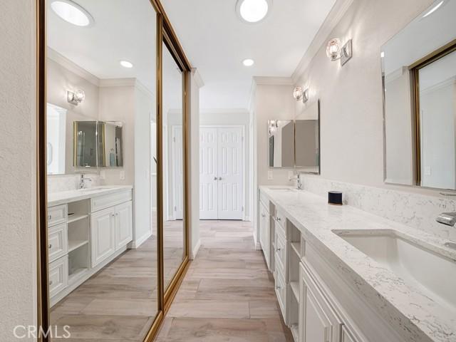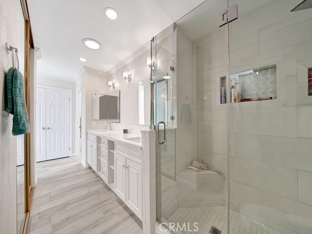 Bathroom Features: Double sinks in bath(s), Bathtub, Walk-in shower, Vanity area, Upgraded, Quartz Counters, Exhaust fan(s), Double Sinks in Primary Bath, Shower, Shower in Tub, Remodeled, Linen Closet/Storage