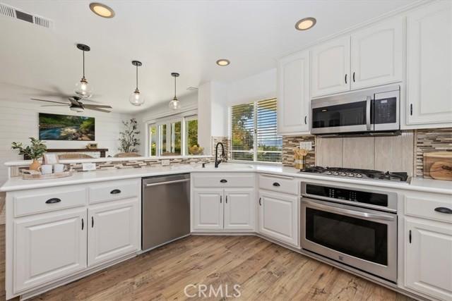 *HUGE PRICE IMPROVEMENT- OWNER HAS MOVED OUT AND THIS HOME IS MOVE-IN READY AND FAST CLOSING AVAILABLE* Welcome to your new home in the highly sought-after Lake Hills community of Riverside! This beautifully maintained 4-bedroom, 2.5-bathroom residence offers 2,217 sq ft of comfortable living space, thoughtfully updated for modern lifestyles. Step inside to find laminate flooring, quartz countertops, a stylish backsplash, and newer recessed lighting in the kitchen. Fresh interior paint (less than 5 years old) and upgraded lighting fixtures throughout the home create a bright, modern feel- where comfort meets luxury! Additional updates include upgraded bathroom countertops, a new downstairs bathroom vanity, new lighting around the exterior of the home (driveway, porch and backyard) and an epoxied garage floor for a clean, polished finish.