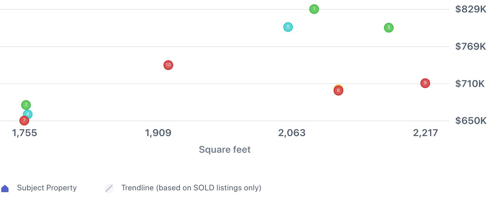Comparable homes sold for an average of $351 / sq. ft. Many factors such as location, use of space, condition, quality, and amenities determine the market value per square foot, so reviewing each comp carefully is important.