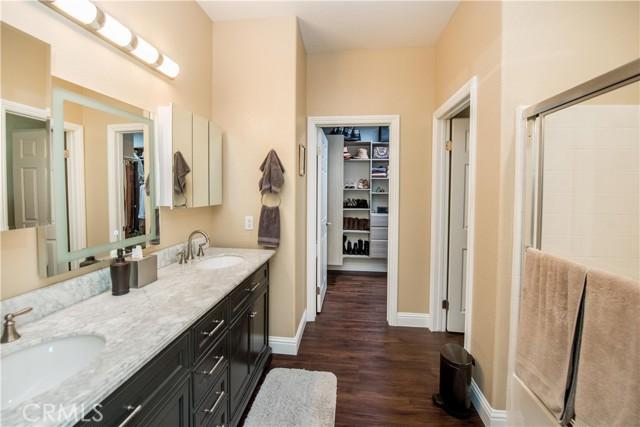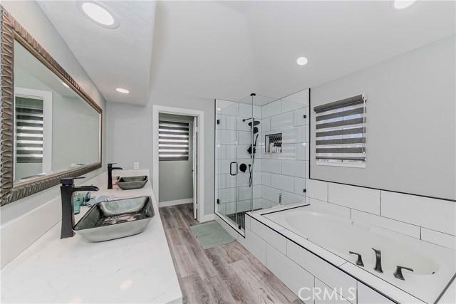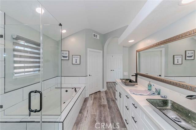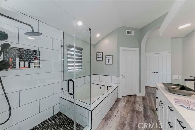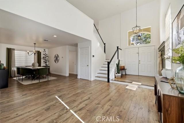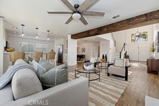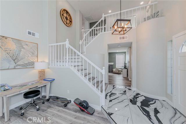 Beautifully remodeled Lake Hills home with custom upgrades inside & out move-in ready with stunning backyard retreat! Welcome to this beautifully updated home in the sought-after Lake Hills neighborhood of Riverside. Every detail has been thoughtfully designed to combine style, comfort, and modern convenience. Features include new flooring, remodeled bath with custom vanity & shower door, custom walk-in closet, wood stairs with auto step lighting, crown molding, newer A/C, water heater, updated breakers in electrical panel, and fresh interior/exterior paint. BEDROOM DOWNSTAIRS WITH FULL BATH!! Backyard boasts aluminum patio cover with fan, custom landscaping with self-set irrigation & lighting, and raised garden planters. Garage includes epoxy flooring & dedicated cooling unit. Move-in ready with stylish updates throughout! Don't wait long, this one will go fast!!