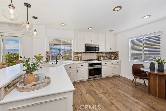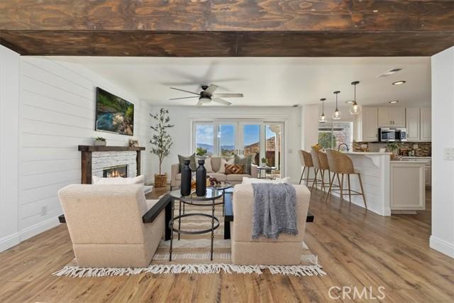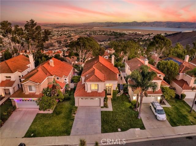 >>> This home is TRULY special and something you MUST see for yourself to believe. <<< This beautifully upgraded Lake Hills residence gives you the feel of a Pottery Barn showroom and showcases some of the best panoramic views of Lake Mathews that Lake Hills has to offer. With 4 bedrooms, 2.5 bathrooms, and 2,089 SqFt of refined living space, this home blends comfort and sophistication in every detail. Step inside to a dramatic entry where sky-high ceilings, crown moulding, and wide-plank baseboards frame textured travertine flooring and soft modern grey walls bathed in natural light. The kitchen is a true showpiece, featuring stainless steel LG Suite appliances, granite countertops, soft-close cabinetry, and a stylish backsplash all opening to the family room anchored by a stacked-stone fireplace and expansive lake views that will WOW! even the most discerning critics. Upstairs, the primary suite offers a peaceful retreat with its own breathtaking view of the lake -- imagine waking up to that every morning!! -- a walk-in shower, and a jacuzzi tub perfectly positioned against the window to soaking those views. Additional highlights include new carpet with upgraded padding, plantation shutters, Milgard double-pane windows, a QuietCool whole house fan, recessed lighting throughout, and a roof tune-up that was conducted in 2023. The backyard invites relaxation with an in-ground jacuzzi accented by color LED lighting, while stucco privacy walls ensure a serene outdoor escape. This Lake Hills home captures the perfect balance of elegance, comfort, and California livingwith views youll never tire of. Nestled on 750 acres, Lake Hills provides a serene mountaintop retreat near Riversides cultural and educational offerings as well as shopping. Residents enjoy the vast open spaces, top-tier Lake Hills Elementary, parks, playgrounds, picnic areas, and a basketball half-court. The HOA also includes maintenance of the extensive common grounds as well as an evening security patrol. Perfect for commuters, with easy access to the 91 Freeway and Metrolink.