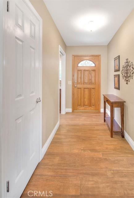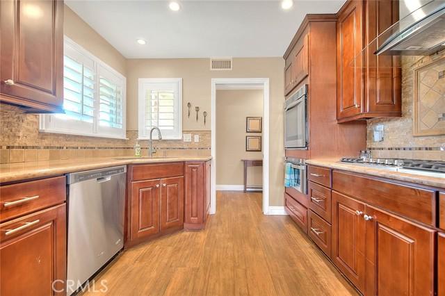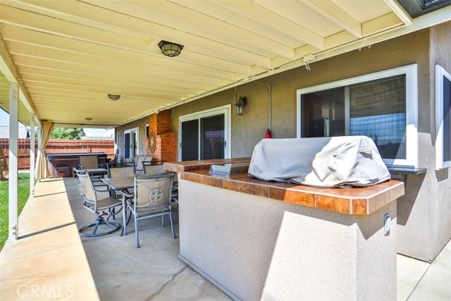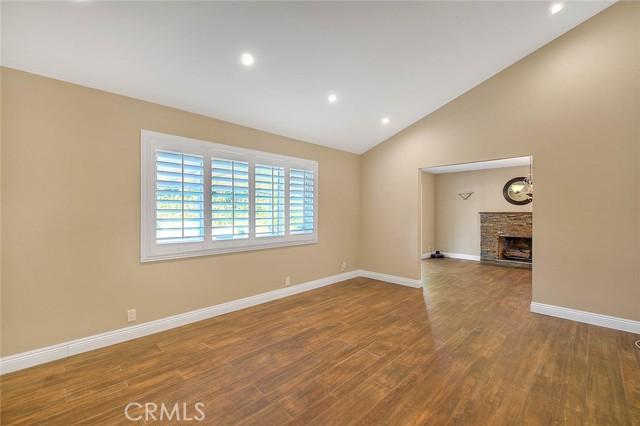 Wonderfully upgraded SINGLE story home, TURN-KEY and move-in ready! A peaceful cul-de-sac location welcomes you to this inviting property. Attractive wood plank design porcelain tile flooring is featured in the hallway, entry, guest bathroom, living room, kitchen and family room. Entry leads to a nicely sized living room which has recessed lighting, half-vaulted ceiling and shutters. The family room has a lovely fireplace that has been upgraded with stacked rock and sconces on either side. Prior owner used the family room as an over-sized dining room which created a cozy fireside dining atmosphere. The beautifully redesigned kitchen boasts rich wood cabinetry, granite counters, decorative tile backsplash, stainless appliances, glass inset panels for display, pendant lighting over the breakfast bar and additional cabinetry was added to provide greater storage options and counter space features. (completed in the area that would have formally provided nook dining) One of the guest bedrooms has built-in cabinetry to partner with a desk/office space while still allowing room for a bed. The guest bathroom was remodeled with a new vanity, flooring, shower/tub tile work and more. The primary bedroom features on-suite bathroom that was remodeled to include a new vanity, tile flooring, fixtures and a large walk in tiled shower. There are also helpful closet organizers in the primary closet. Notable interior extras: new neutral carpeting, shutters, ceiling fans in all bedrooms, whole house fan, upgraded lighting fixtures, newer dual pane windows and decorative etched glass sliders leading to the backyard patio. The backyard has a large covered patio, perfect for outside dining or entertaining. Block wall fencing on all sides create a private backyard setting. The backyard is very spacious and could easily have room for a pool or other outdoor feature that might be desired. Garage has convenient additional storage and there is an area for laundry. The home is nearby to area parks, schools (Damian High and Grace Miller Elementary, University of La Verne) local shopping and dining. Charming downtown La Verne has many unique dining and shopping options. This is a property you will enjoy touring.