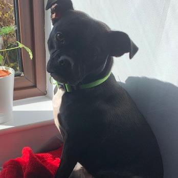 "We first met Rosie during the first lockdown in 2020, when she was just a nine-week-old Shepuppy."isa cross between a Staffordshire Bull Terrier and a Pug. Now two years old, she's Jen's little right-hand lady. She’s very sweet and friendly with other dogs and children, though the two cats she shares her home with are not so keen!