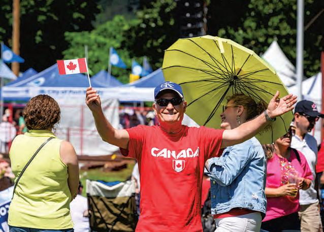 Thecelebrationat RockyPointParkfeatured ahostofspecialevents touchingonaspectsof Canada’spioneeringspirit, fromtheGoldenSpike cancandancers,toaloggingshow.