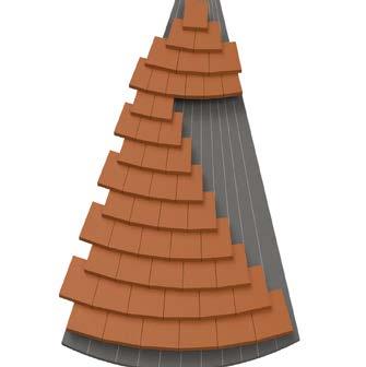 Hip Starter: The closed hip piece which is used at the outside corner, intersecting of two eaves to start the hip tile