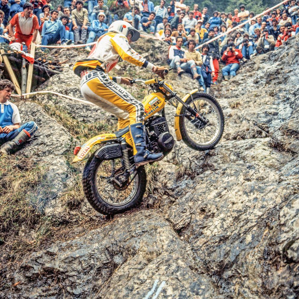 A strong, consistent season in 1981 would witness 19-year-old Frenchman Gilles Burgat becoming the youngest rider ever to win the FIM World Trials Championship, a record which still stands. As 1982 opened, however, it would be a change of power in the world championship for both riders and manufacturers. With the lure of more Italian Lira than SWM would offer, Gilles Burgat moved to the new 240 Fantic model as the Italian manufacturer raised its financial involvement in the world series. American Bernie Schreiber ditched the struggling Italjet project and moved to the vacant seat at SWM with a tried-and-tested machine. As the well-documented financial problems hit the mighty three manufacturers Bultaco, Montesa and Ossa in Spain, their world championship-winning riders, including Yrjo Vesterinen (Bultaco-FIN) 1977–1978 and Ulf Karlson (Montesa-SWE) 1980, were coming to the end of their careers. The old guard of English riders, including the first FIM World Trials Champion, in 1975, Martin Lampkin (Bultaco) and Malcolm Rathmell (Montesa), were in the same boat. This new generation would see other younger names joining Burgat and Schreiber, including 18-year-old Thierry Michaud (SWM-FRA) and another Lampkin, Arthur’s son John, on the new two-stroke Hiro engined CCM trials machine. As the trick riding, which included the ‘Pivot Turn’ and BunnyHop’, became more familiar, a new sound was beginning to have an impact at the very top of the sport; a young spectacle-wearing Belgian rider by the name of Eddy Lejeune on the four-stroke Honda. He had already tasted victory in 1980, with three wins, before winning again in 1981 in Belgium and Ireland. As we take a look at the first six rounds of the 12-round 1982 FIM World Trials Championship, Eddy Lejeune would lead the way, winning four rounds, followed by Schreiber and Burgat on one win each. Were we about to see a Japanese manufacturer with a four-stroke trials machine win its first-ever FIM World Trials Championship? We would have to wait and see.