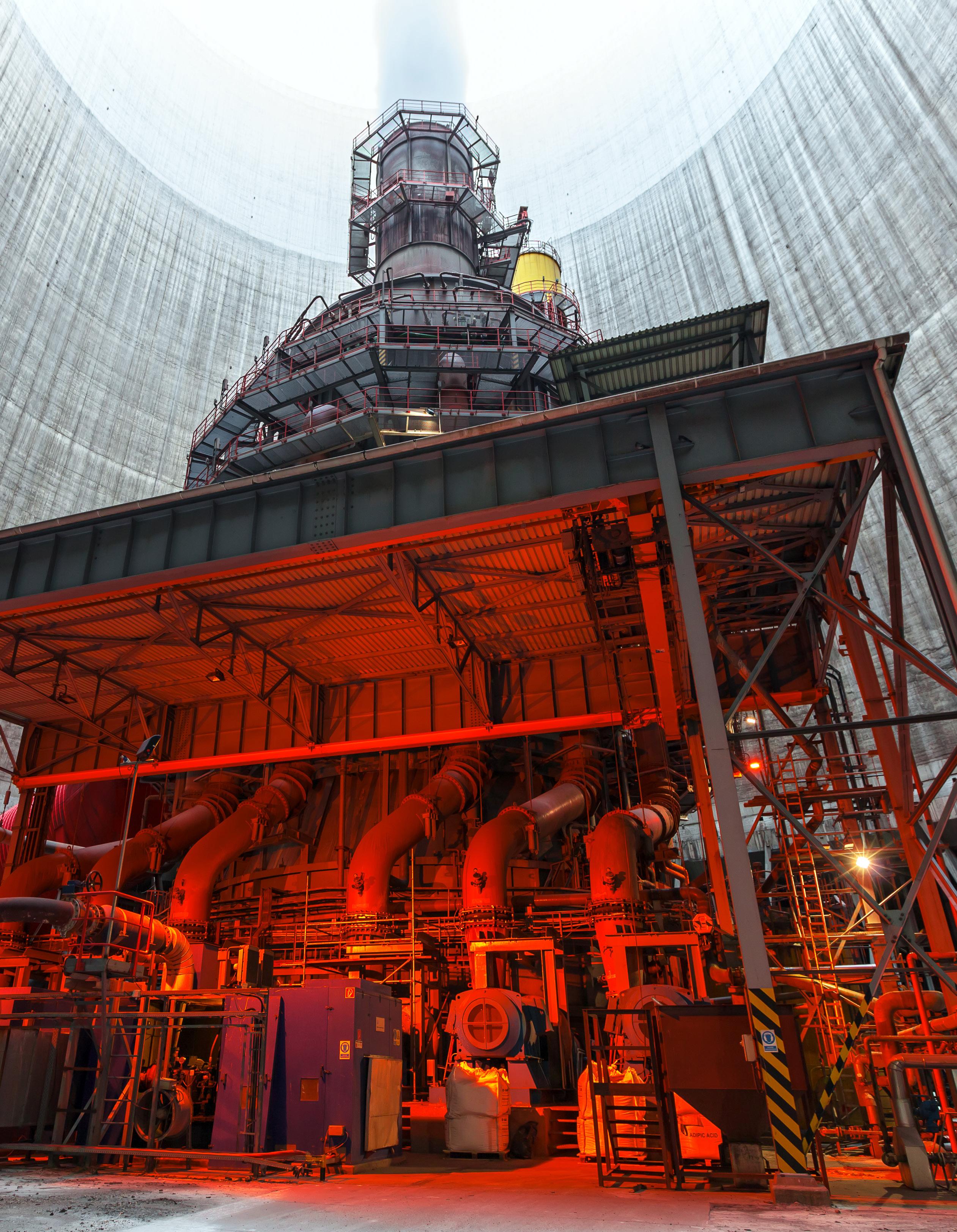 The boiler is a large cylindrical vessel that is used to convert water into steam. The coal is burned in the boiler, and the heat generated by the combustion process is used to heat up the water, which turns into steam. The steam produced in the boiler is at very high pressure and temperature.