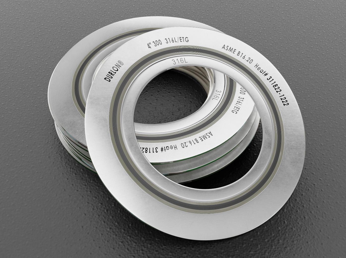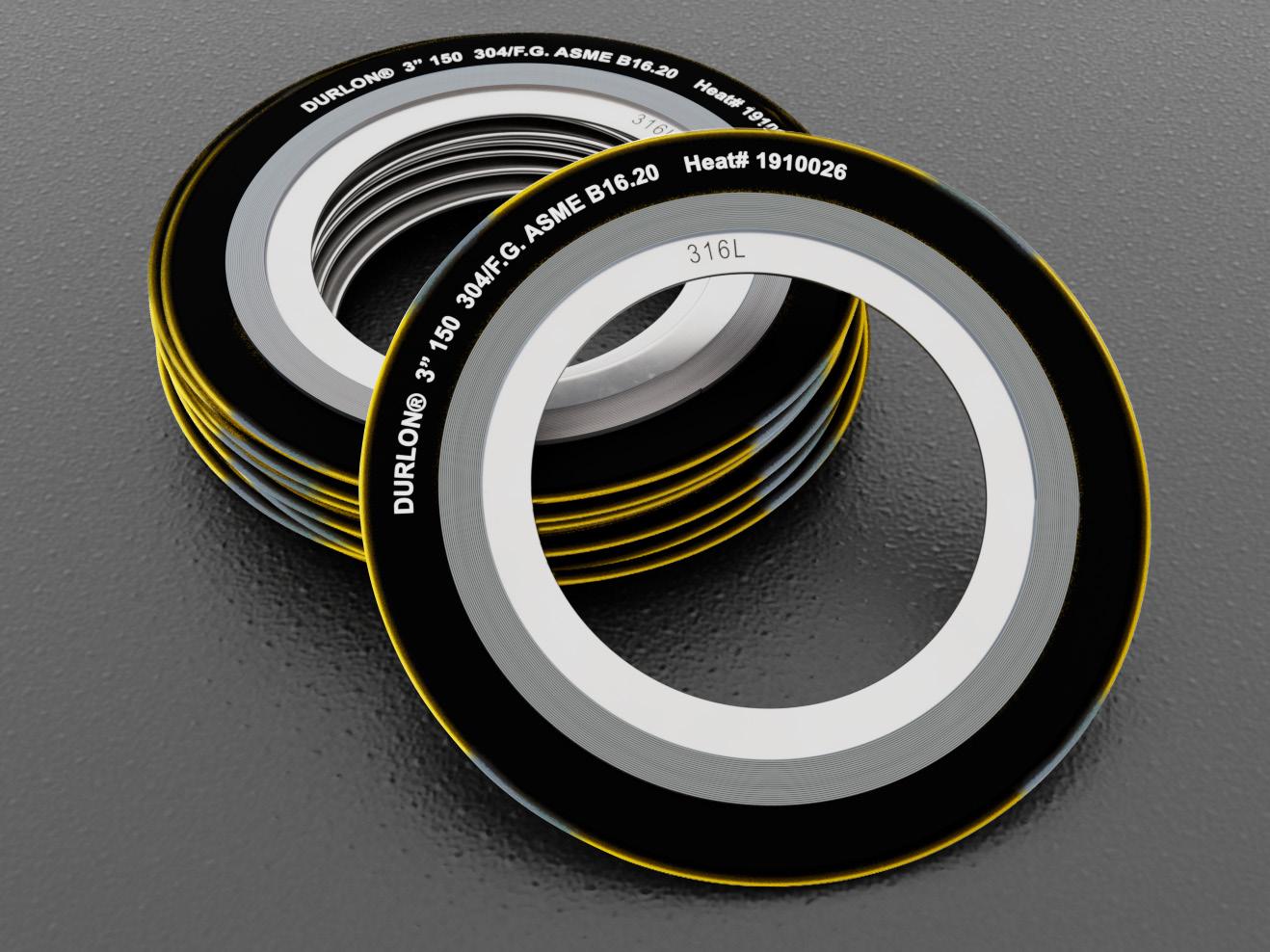 Durlon® SWG - All Durlon® SWG’s are manufactured according to ASME B16.20 standards. Quality Assurance complies with API Specifications Q1 and ISO 9001 standards. Super Inhibited Graphite meets the requirements of Shell Specification MESC SPE 85/203 and meets PVRC SCR Flexible Graphite Spec for FG 600 material. Durlon® ETG adds an inner and outer protection boundary in the form of a mica-phyllosilicate based sealing material - Durlon® HT1000® consists of phlogopite mica paper impregnated with an inorganic binder at less than half the binder amount found in a typical vermiculite-phyllosilicate filled product. This lower binder content allows for superior weight retention and results in ultimate extreme temperature sealing performance. Durlon® Kammprofile* - Max temperature is dependent on material used.
