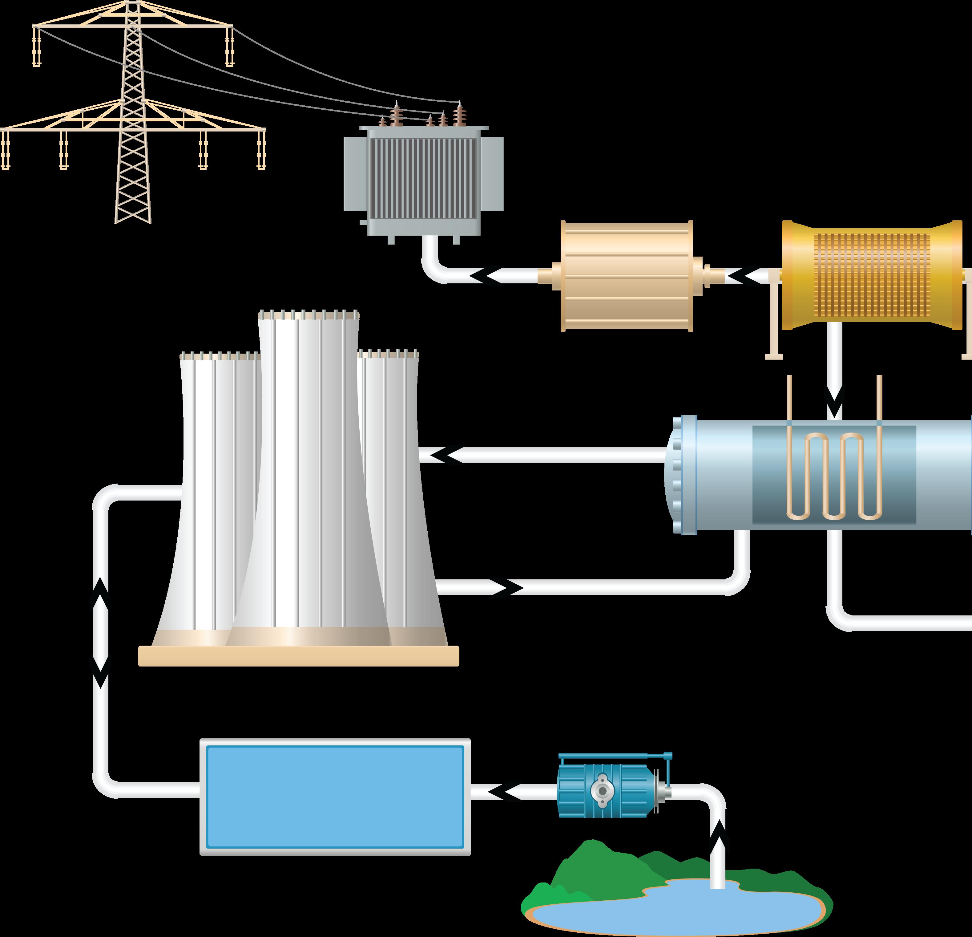 The cooled water is then returned to the condenser to be used again in the thermal power production process.