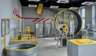 shop, a bank and a mini-cinema. These spaces display the historic collections and faithfully reflect the atmosphere of the era. The dominant feature of the urban development is a vintage 1926 JOWETT Special Roadster car. The exhibition is complemented by a number of interactive stations, operated via touchscreen monitors. Also noteworthy is the 3D mapping, created using high-end projectors, which complements the architecture and brings the space to life.