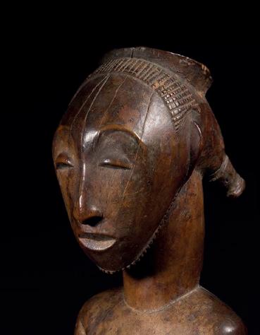 initiées du bois sacré, pièce rare et singulière provenant de la collection du regretté Mario Meneghini. Figureront également divers objets acquis avant 1968 dans la première galerie de Jacques Kerchache : une divinité aztèque en pierre, des coupes yoruba, ainsi qu’un masque kepong de Nouvelle-Irlande. À ces ensembles s’ajoutent des pièces de la collection Philippe Guimiot, telles qu’une ancienne statue des îles Leti et un superbe bulul ifugao des Philippines, ainsi qu’un masque baule de belle provenance, celle de Louis Carré.