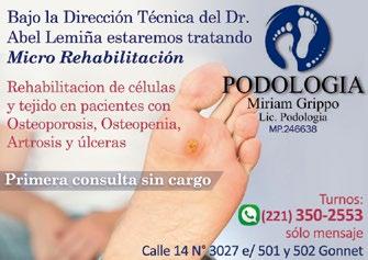 ( 26 ) TU REVISTA ZONA NORTE Cno. Centenario 2888 e/503 y 504 Nº M.B. Gonnet Tel: 471-0147 / 484-4007 Far macia Chillón Tel: 471-6364 farmacia Blanco Per fumería - Todas las mutuales 489 N° 2069 e/15 bis y 16 - Gonnet 471-0403 Cno. Belgrano e/484 y 485 M.B. Gonnet 526-8232 (221) 672-2015 ENCUENTRE LOS TURNOS EN: www.colfarmalp.gob.ar