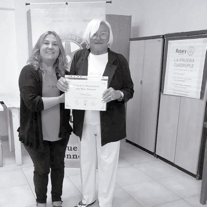 Durante la semana en la que se festeja el Día Internacional de la Mujer, Rotary Gonnet homenajeó a la Sra Marta Grassi, por su trabajo solidario de décadas en favor de la comunidad gonnetense. La Pte. del club rotario Sra Fernanda Suarez le entregó un Diploma recordatorio y la socia Aurora Rodriguez un ramo de flores.