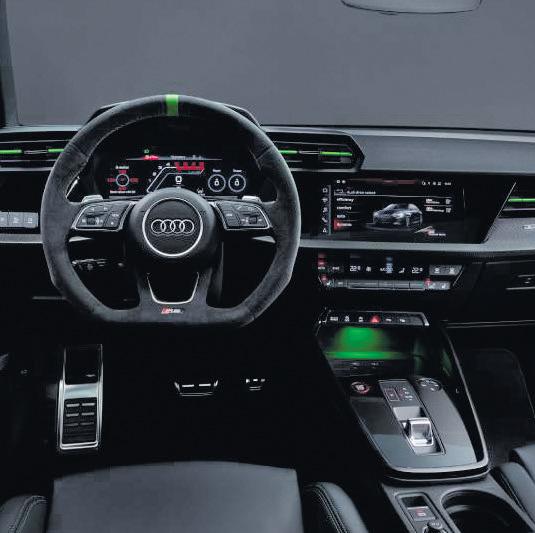El Audi RS 3 Sportback ofrece una conducción dinámica con un motor de cinco cilindros que desarrolla 400 CV, acelerando de 0 a 100 km/h en 3,8 segundos y produciendo 500 Nm de par.Viene equipado con detalles deportivos, como faros LED, llantas de 19 pulgadas y el exclusivo sistema torque splitter. Los asientos RS, el salpicadero de fibra de carbono y los indicadores en el Audi virtual cockpit plus refuerzan la sensación de competición.