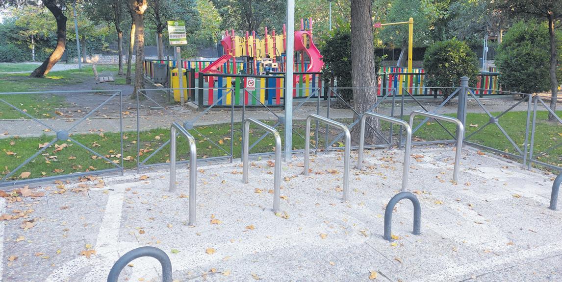 Dentro del plan de mejora y conservación de la urbanización y con el objetivo de facilitar la sostenibilidad dentro de la urbanización, la Entidad de Conservación de El Encinar de los Reyes-Alcobendas ha instalado, en una zona infantil, un aparcamiento para bicicletas en el número 21 del Paseo de los Parques.