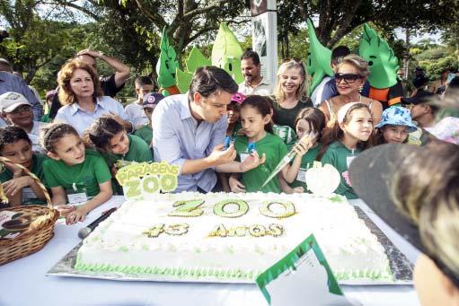 O prefeito explicou para as 50 crianças da Escola Municipal Lapa, do Boqueirão, participantes da festa de aniversário, que a Prefeitura trabalha para deixar o Zoológico cada vez melhor.